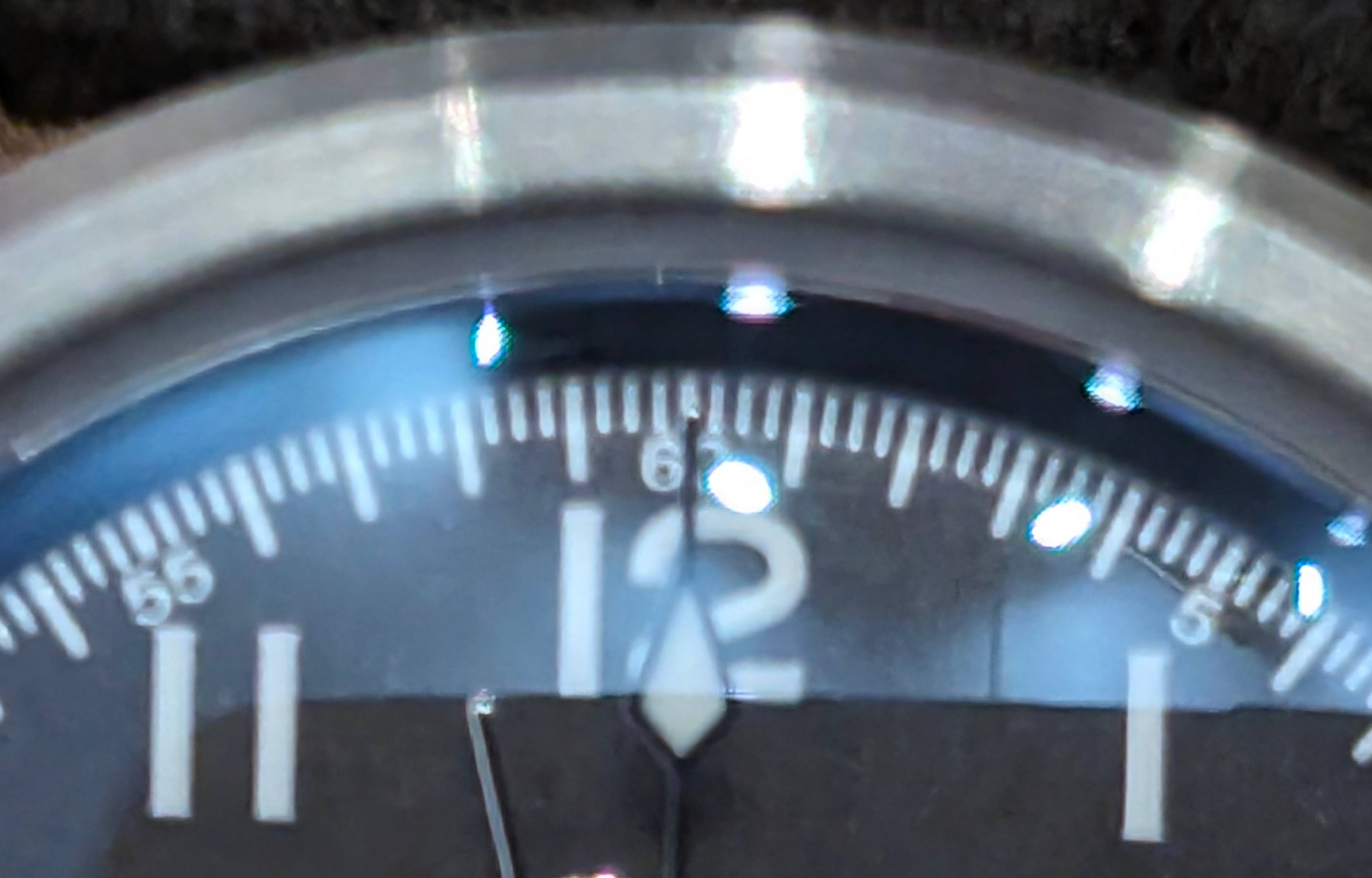 Letztlich bin ich. zum Schluss gekommen, dass es eine optische Illusion ist. Sobald das Licht richtig fällt und der auf Hochglanz polierte Zeiger schön reflektiert wirkt es falsch. Wenn man aber das menschliche Auge und optische Illusionen ausschließt so gut es geht erkennt man, dass der Zeiger so gut wie perfekt gesetzt ist.Hier sieht man es schön, dass der Zeiger doch passt, wenn man das menschliche Auge aus der Rechnung raus nimmt.