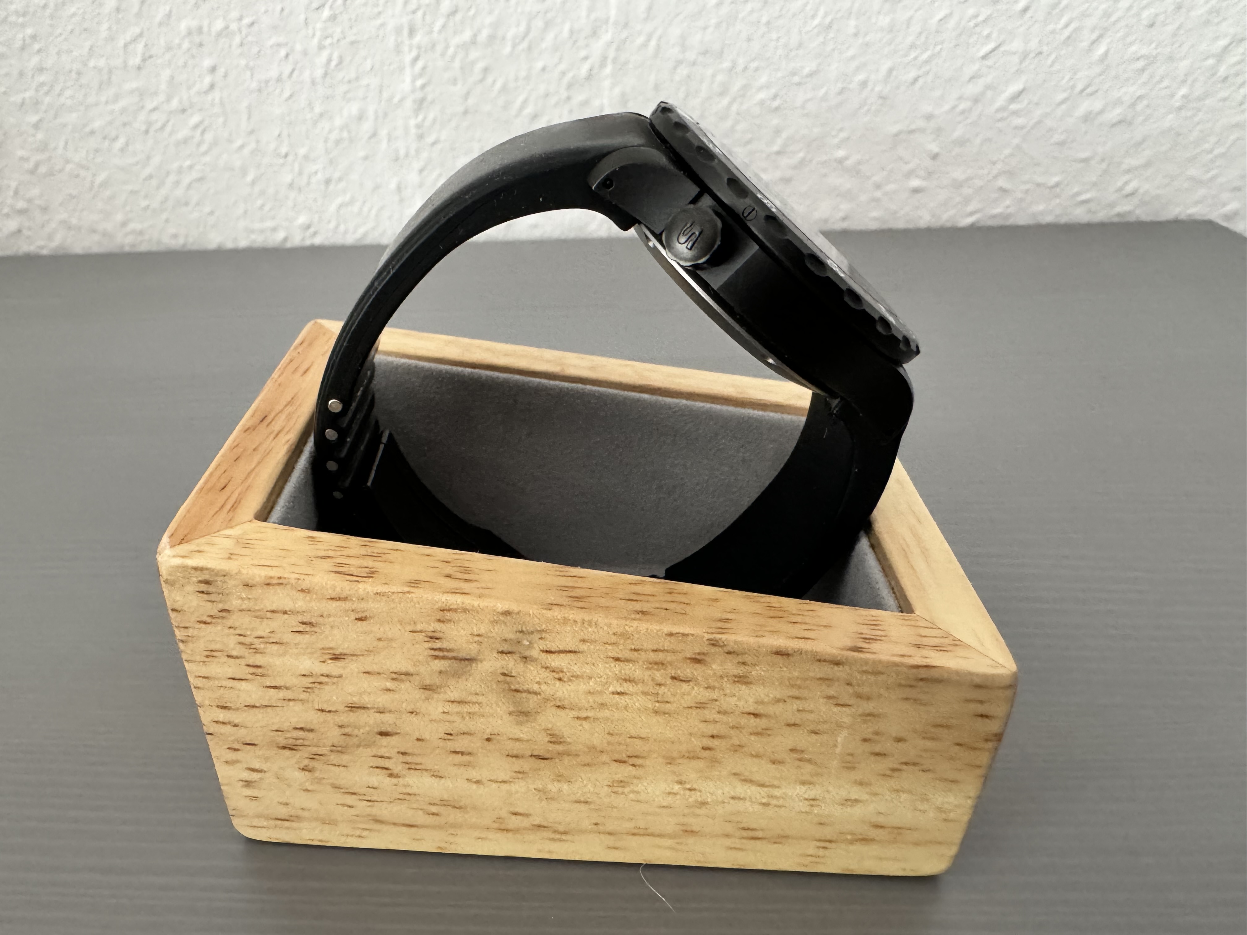Zustand der Uhr Sehr gut 9/10. Zustand der Schliesee und des Silikonbands Deutliche, aber sehr schöne Patina (6/10).