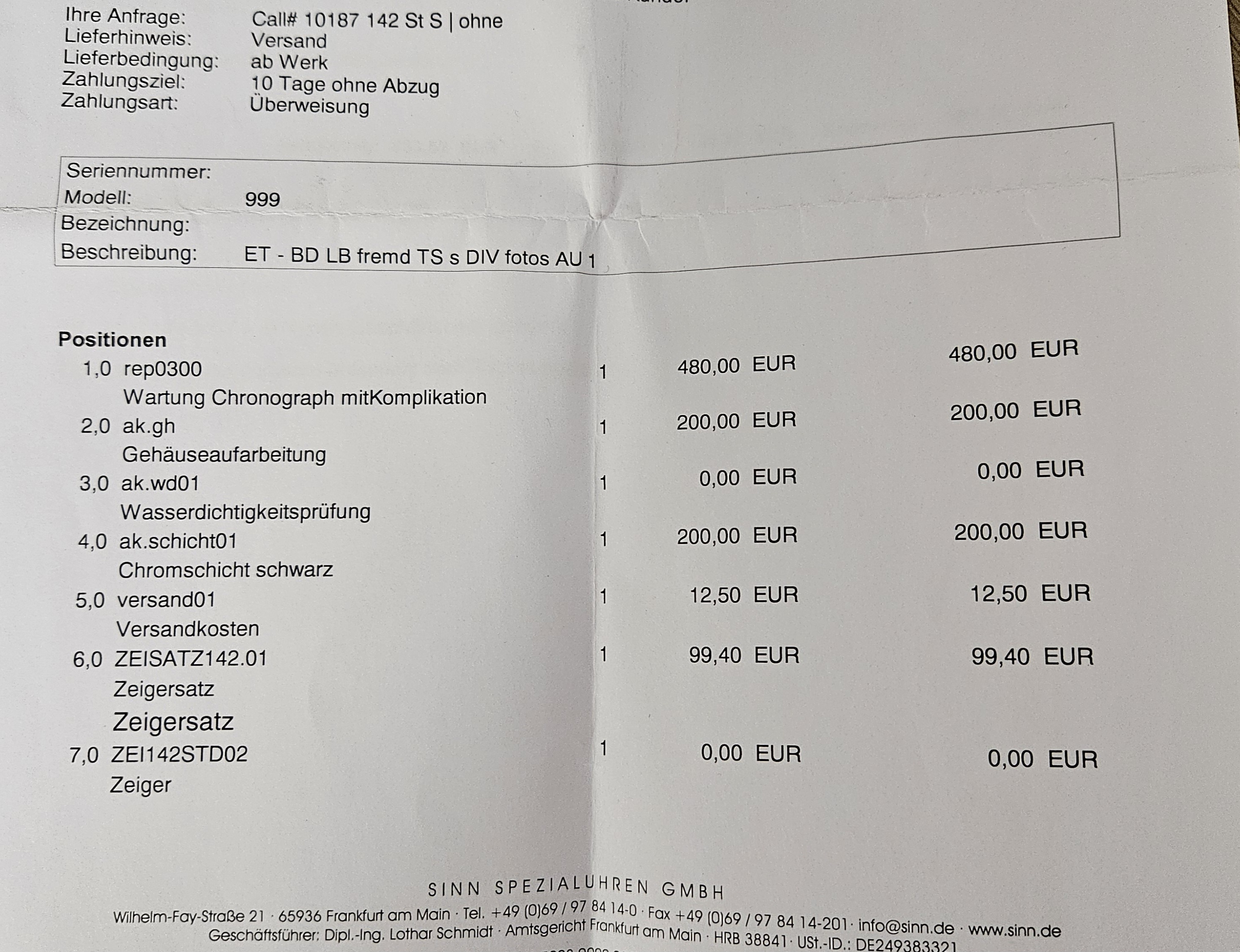 Wobei die Revision bei Sinn inzwischen kein € 480 mehr kostet wie bei Mathias in 2019, sondern knapp unter € 1.000, und das ohne Gehäuseaufarbeitung!