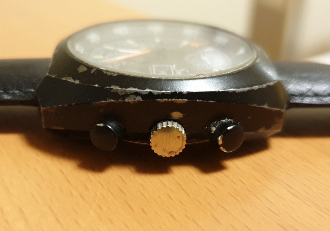Hi Leute, wir haben im Nachlass des verstorbenen Vaters/Schwiegervater einen Sinn-Chronographen gefunden. Die Uhr muss länger gelegen haben, sie lief aber klaglos an und alle Tasten waren bedienbar. Die schwarze Beschichtung ist etwas lädiert. Der Chronograph wirkt aber sehr wertig. Kann mir dazu jemand was sagen?