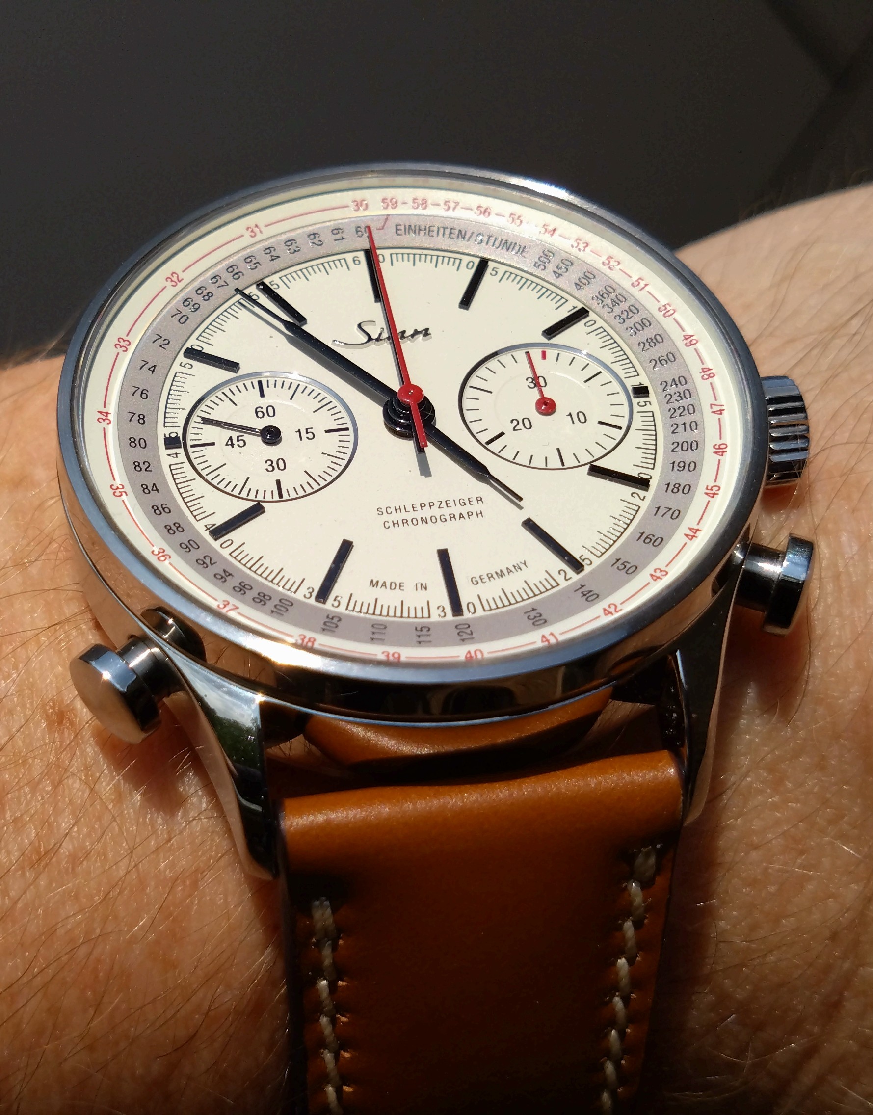 Schaltradchronograph mit Schleppzeigerfunktion anlässlich des 55-jährigen Jubiläums von Sinn Spezialuhren.