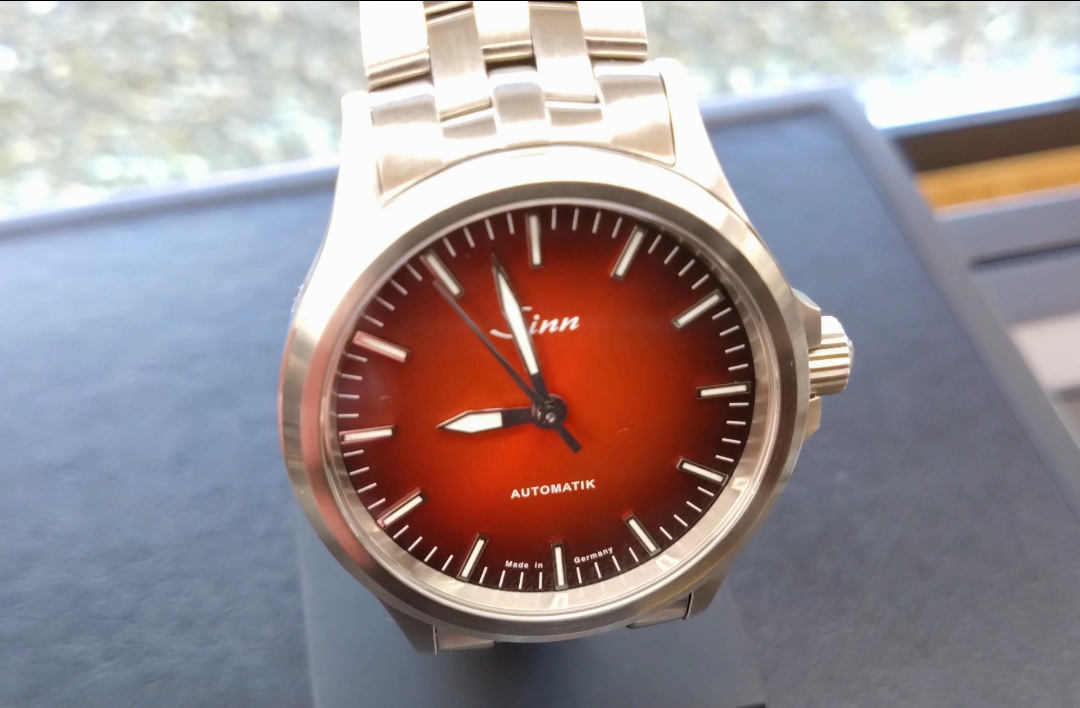 Zifferblatt mit Farbverlauf von Rot nach Schwarz mit Sonnenschliff