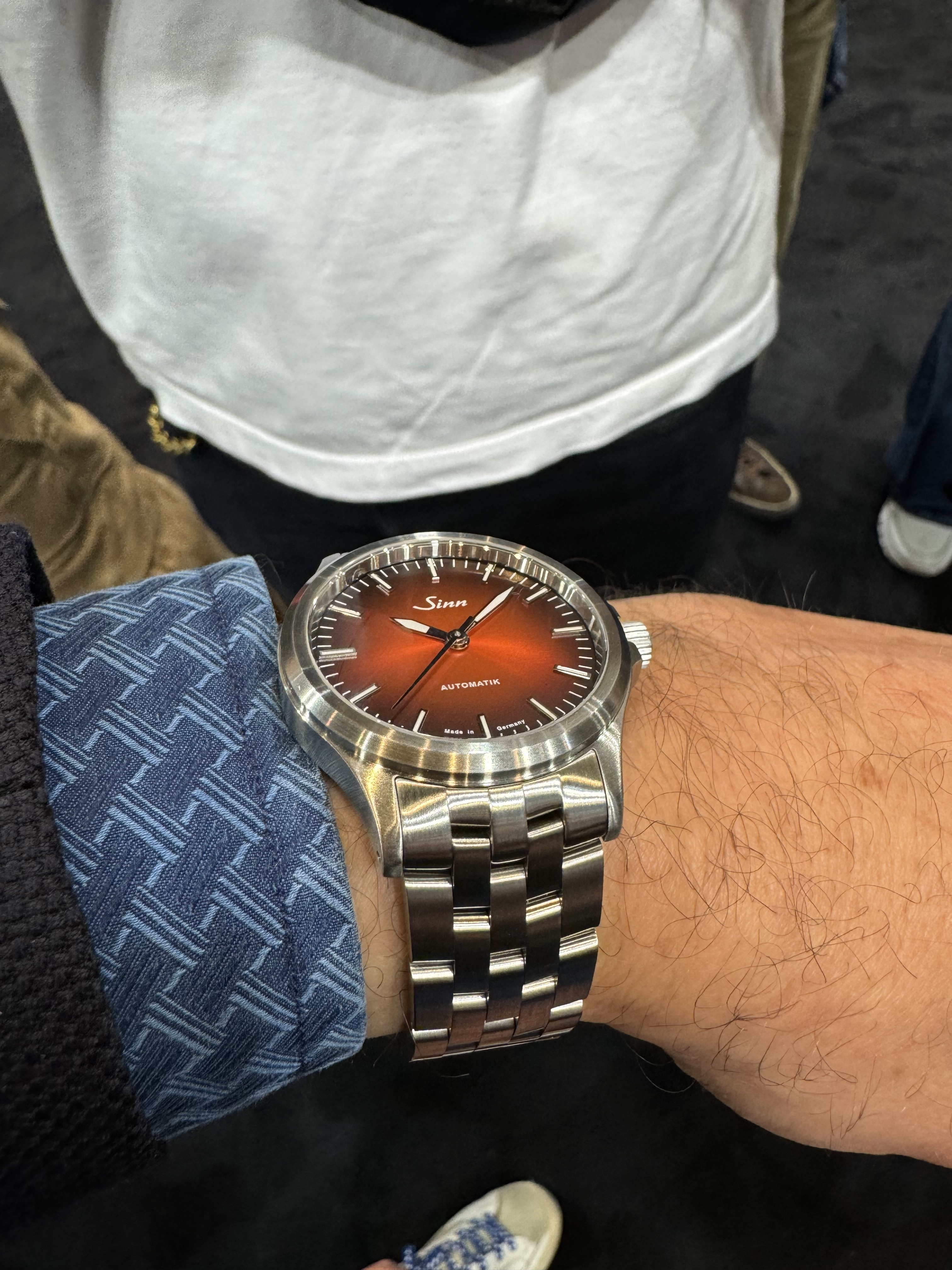 Zifferblatt mit Farbverlauf von Rot nach Schwarz, mit Sonnenschliff