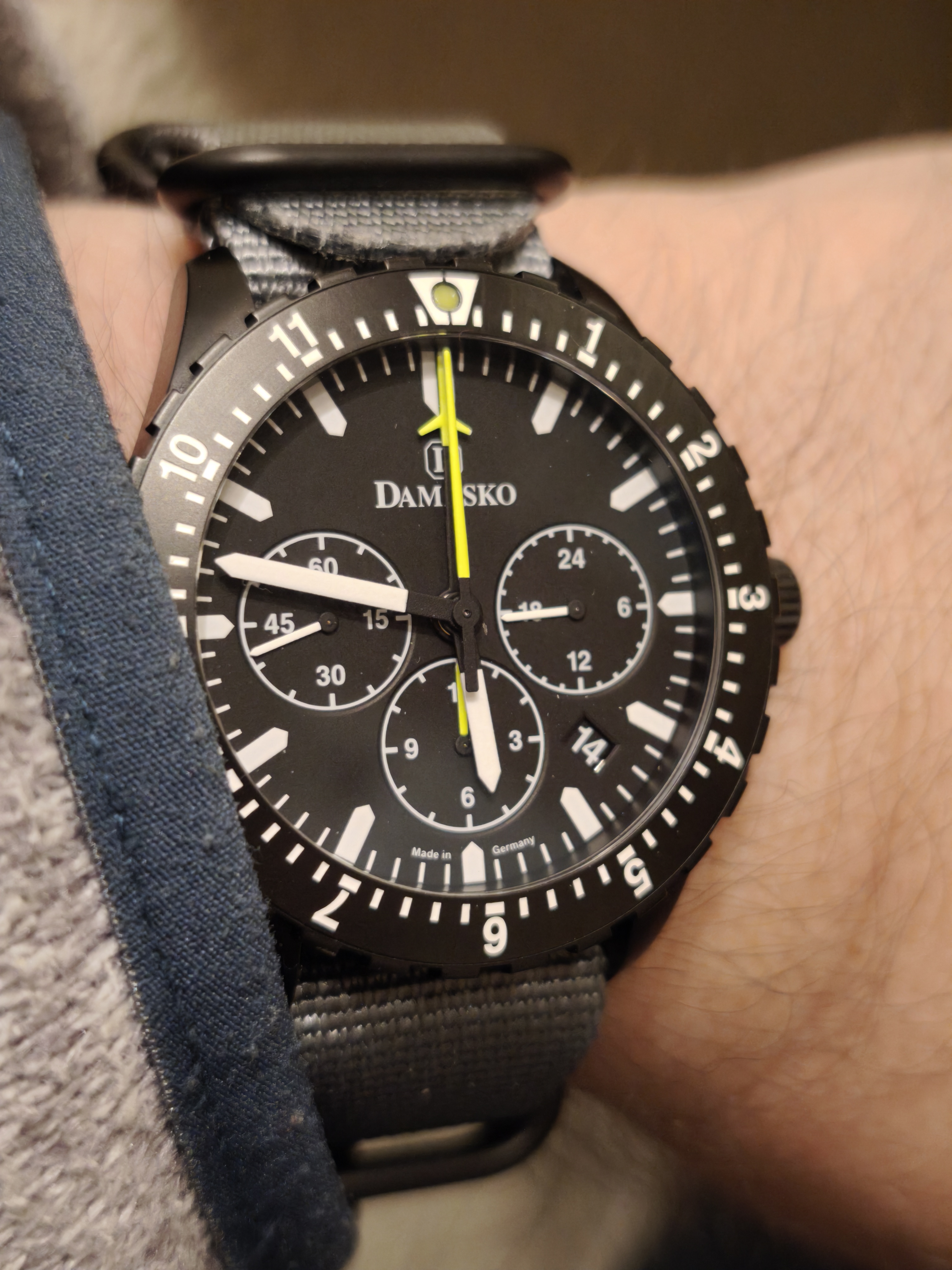 Die Damasko ist eine super Uhr mit Manufakturwerk, gehärtetem Gehäuse und DLC-Beschichtung.