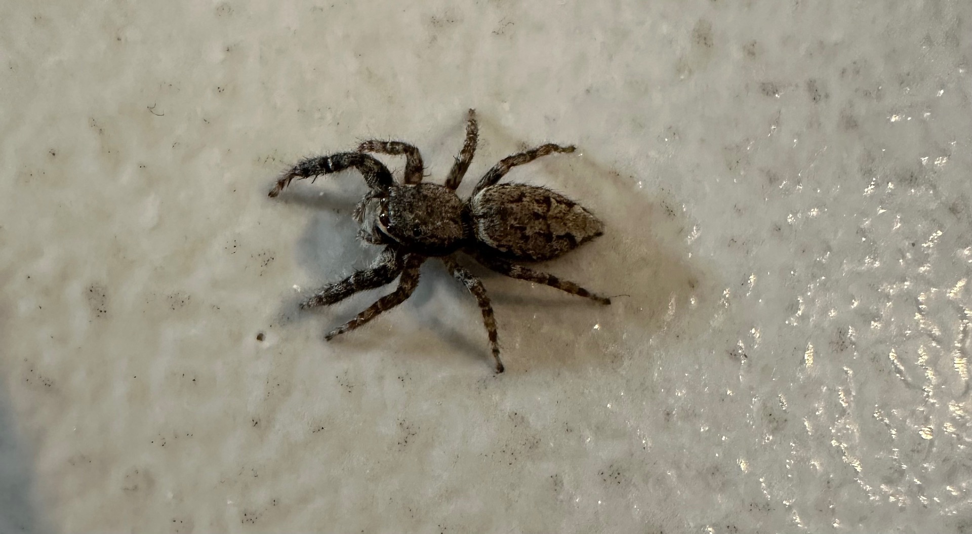 Seit über zwei Monaten ist "Fritz", ein Minifrosch von ca. 1,5 - 2 cm Länge, zum "Haustier" ernannter Bewohner des Schlafzimmers. Ich habe ihm extra einen kleinen Pool spendiert, den er jede Nacht ausgiebig nutzt, ansonsten aber mit unglaublicher Geduld an einer Dauerlichtquelle auf Beute, kleine fliegende Insekten, lauert. Er scheint sich sehr wohl zu fühlen und hat dauerhaftes Bleiberecht. Tagsüber schläft er in seinem Versteck hinter dem Nachttisch.