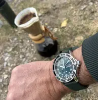 Die anderen Uhren des Herstellers waren ja schon immer thematisch ans Kaffee- und Espressothema angelehnt. Der Name "Brew" kommt ja nicht von ungefähr. Bisher beschränkte sich das aber meist auf einen farblichen Akzent im Bereich von 25 bis 35 Sekunden, also dort, wo laut Faustregel der perfekte Espresso liegt.
