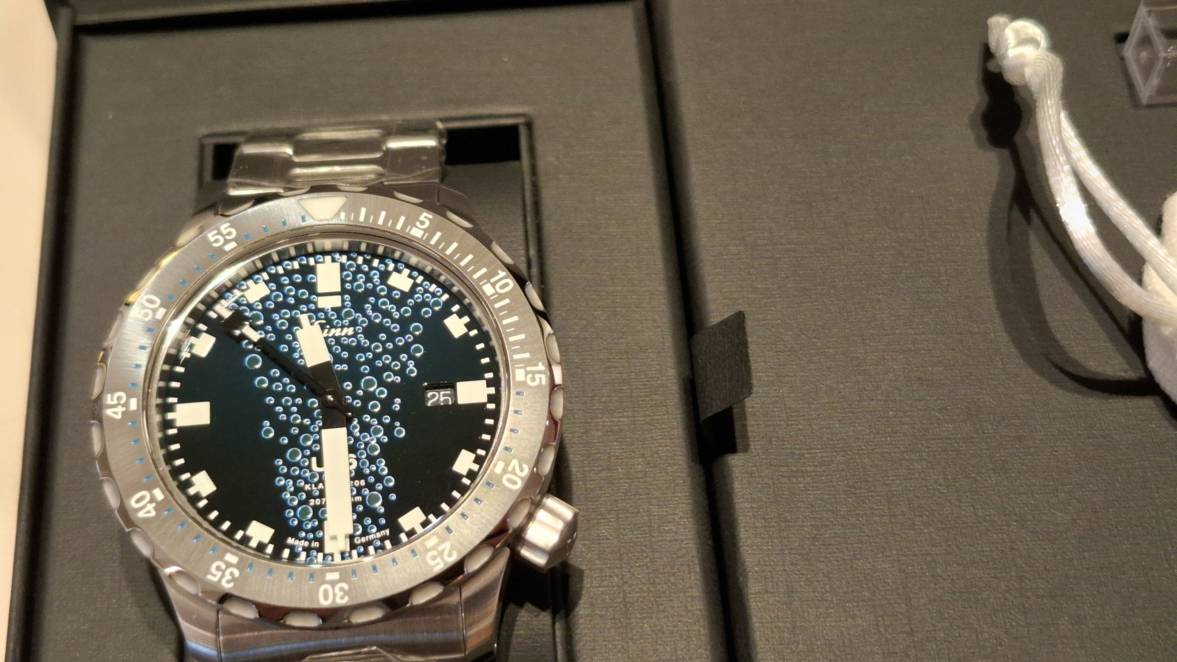 Bei der ersten Besichtigung in Frankfurt dann die Erkenntnis: die ist in Natura noch schöner als auf den Bildern. Das Zifferblatt ist traumhaft und schimmert je nach LIchteinfall unterschiedlich.
