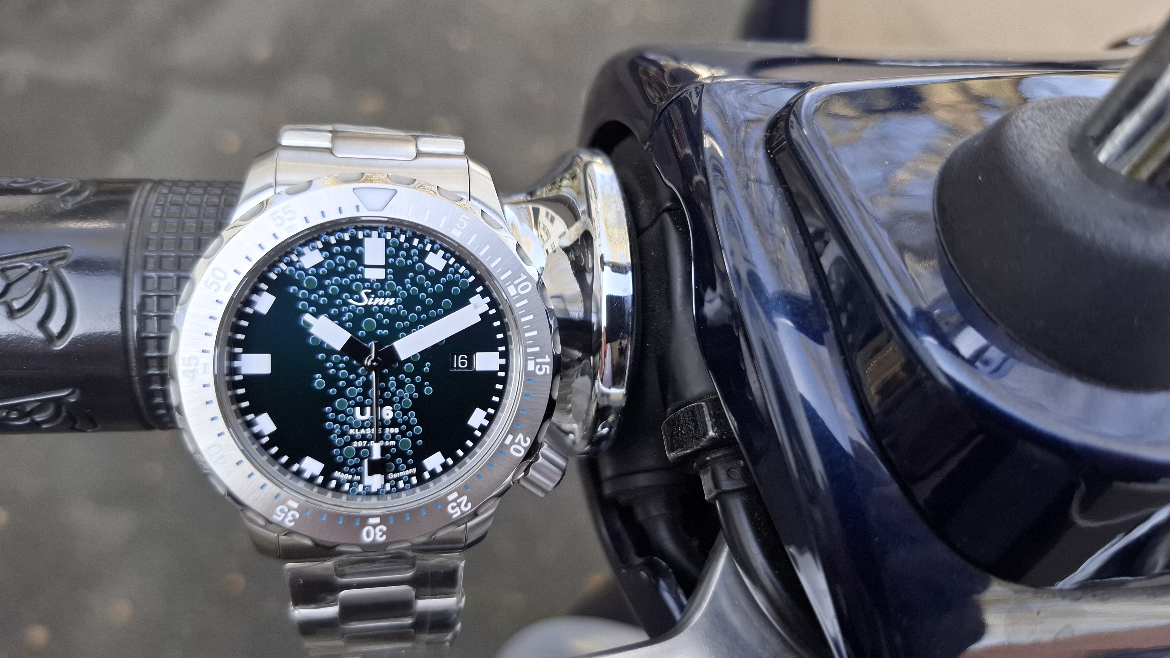 Dann kam der Februar 2025. Neuvorstellung der Frühjahrsneuheiten. Da ist sie endlich, die lang ersehnte Uhr aus gebrauchtem Stahl. Und was man aus dem alten Zeug alles machen kann. Drei verschiedene Modelle, satiniert, teilpoliert, elegant. Der wohl eleganteste Taucher von Sinn. Mit einem traumhaften Zifferblatt. Eine echte Blubber-U.
