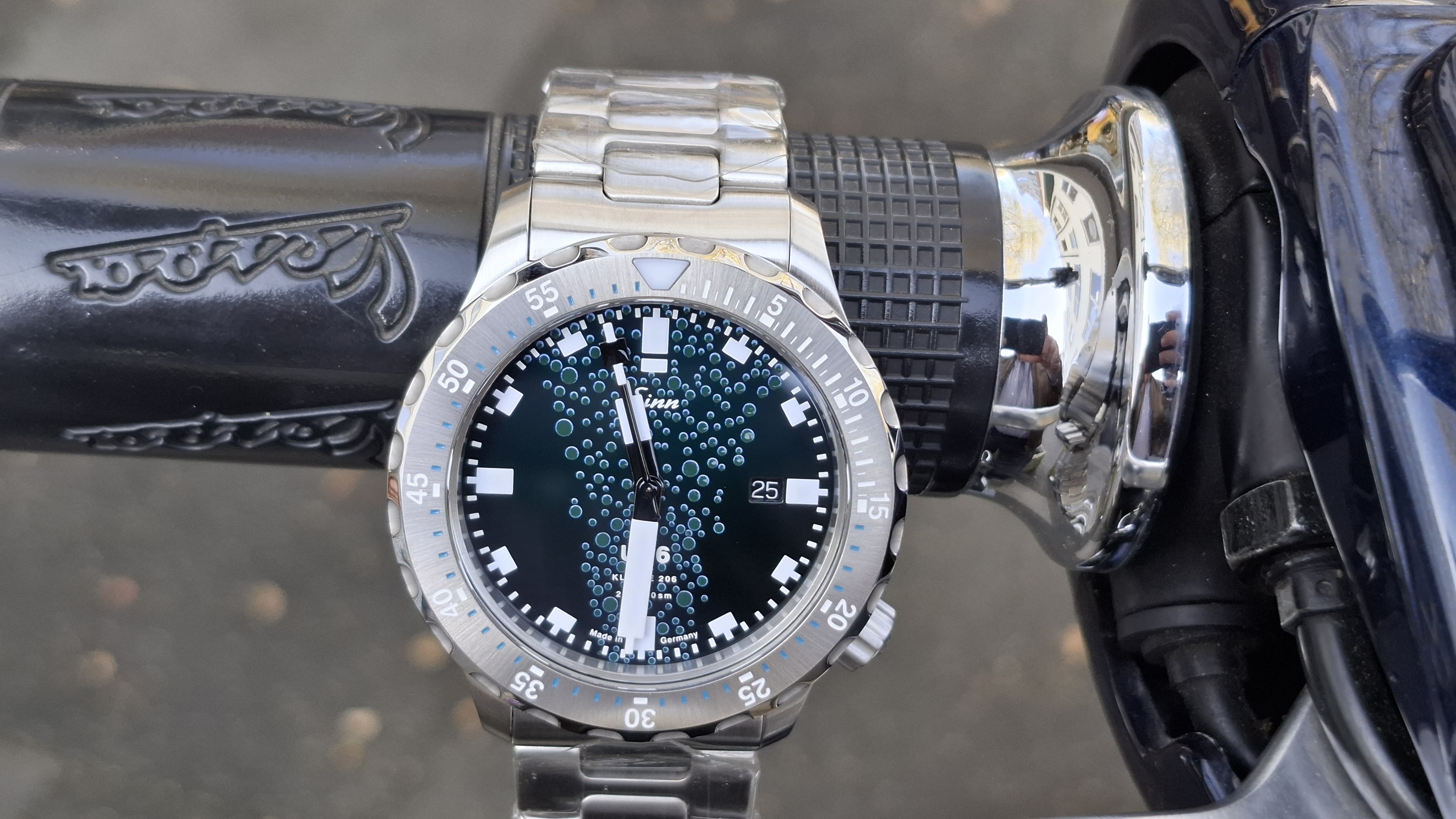 Dann kam der Februar 2025. Neuvorstellung der Frühjahrsneuheiten. Da ist sie endlich, die lang ersehnte Uhr aus gebrauchtem Stahl. Und was man aus dem alten Zeug alles machen kann. Drei verschiedene Modelle, satiniert, teilpoliert, elegant. Der wohl eleganteste Taucher von Sinn. Mit einem traumhaften Zifferblatt. Eine echte Blubber-U.