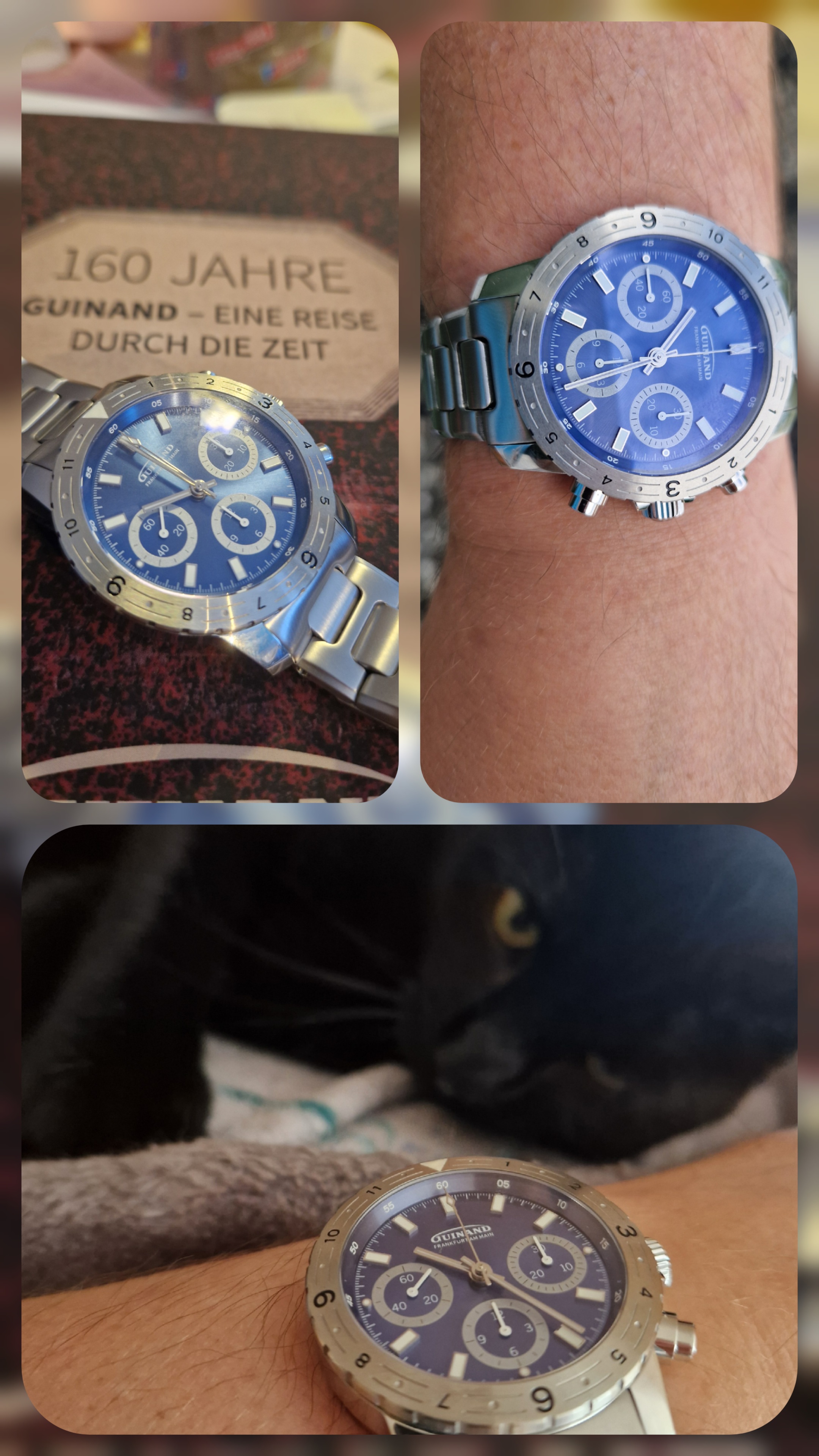 Glückwünsche auch von mir zu dem schönen Chrono! Ich hatte ja Gelegenheit ihn bei der Präsentation zu begrapschen. Die Uhr ist sehr schön gemacht. Wie eigentlich alle Guinand. Du wirst lange Spaß damit haben.