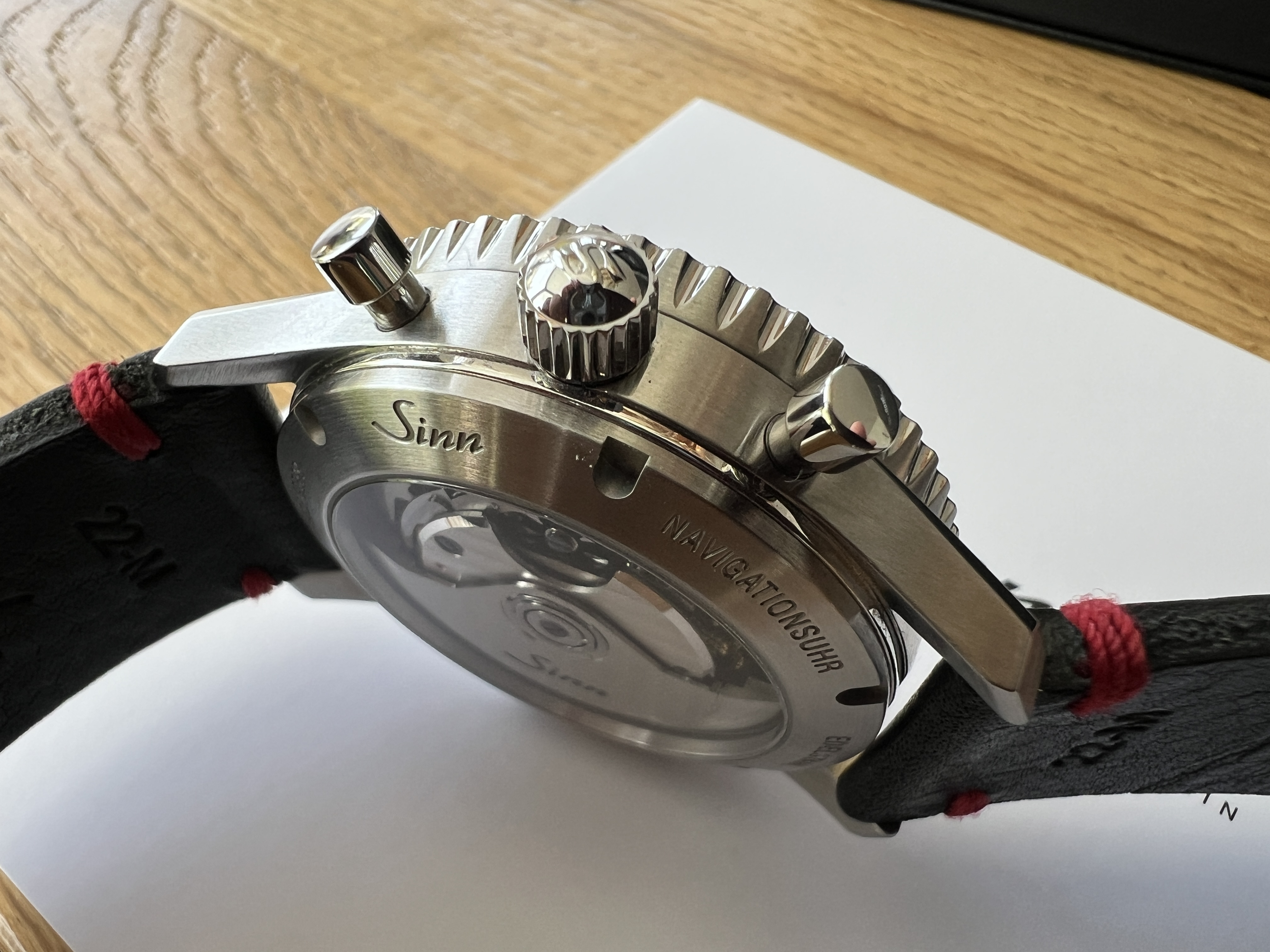 Die 903 habe ich "spontan" bei einem ordentlichen Konzessionär in Deutschland am 24. Mai 2025 gekauft, und (leider) nicht ausgepackt und getragen, außerhalb des üblichen anprobieren und photographieren. Ich hätte wissen können, dass diese Sinn mit dem Navigations- und Rechenzifferblatt nichts für meine Sehschärfe ist.