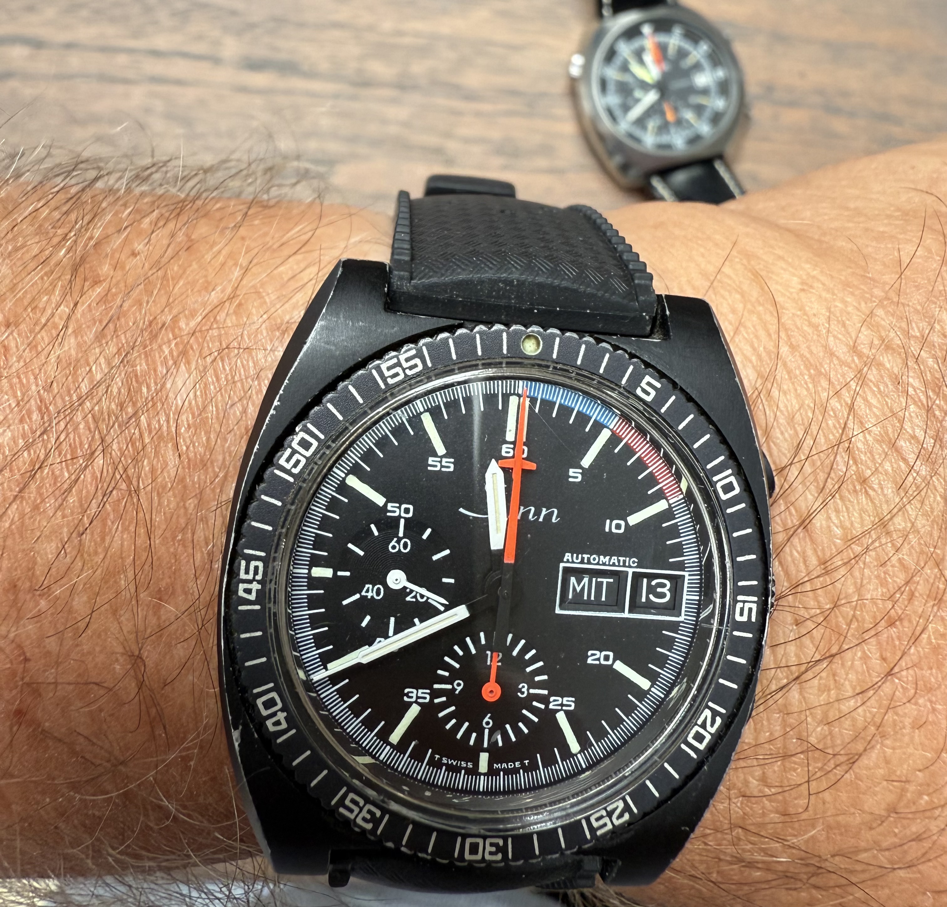 I actually like the look of my watch more than the one pictured above. I'm thinking that maybe I should just accept that its had a movement swap so now I have the best of both worlds. It seems to be running very well and the chrono operates perfectly.