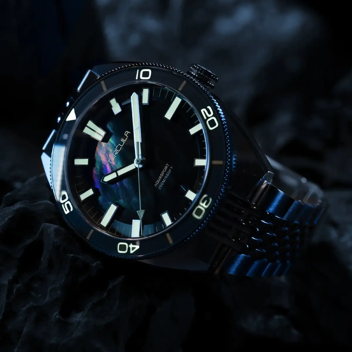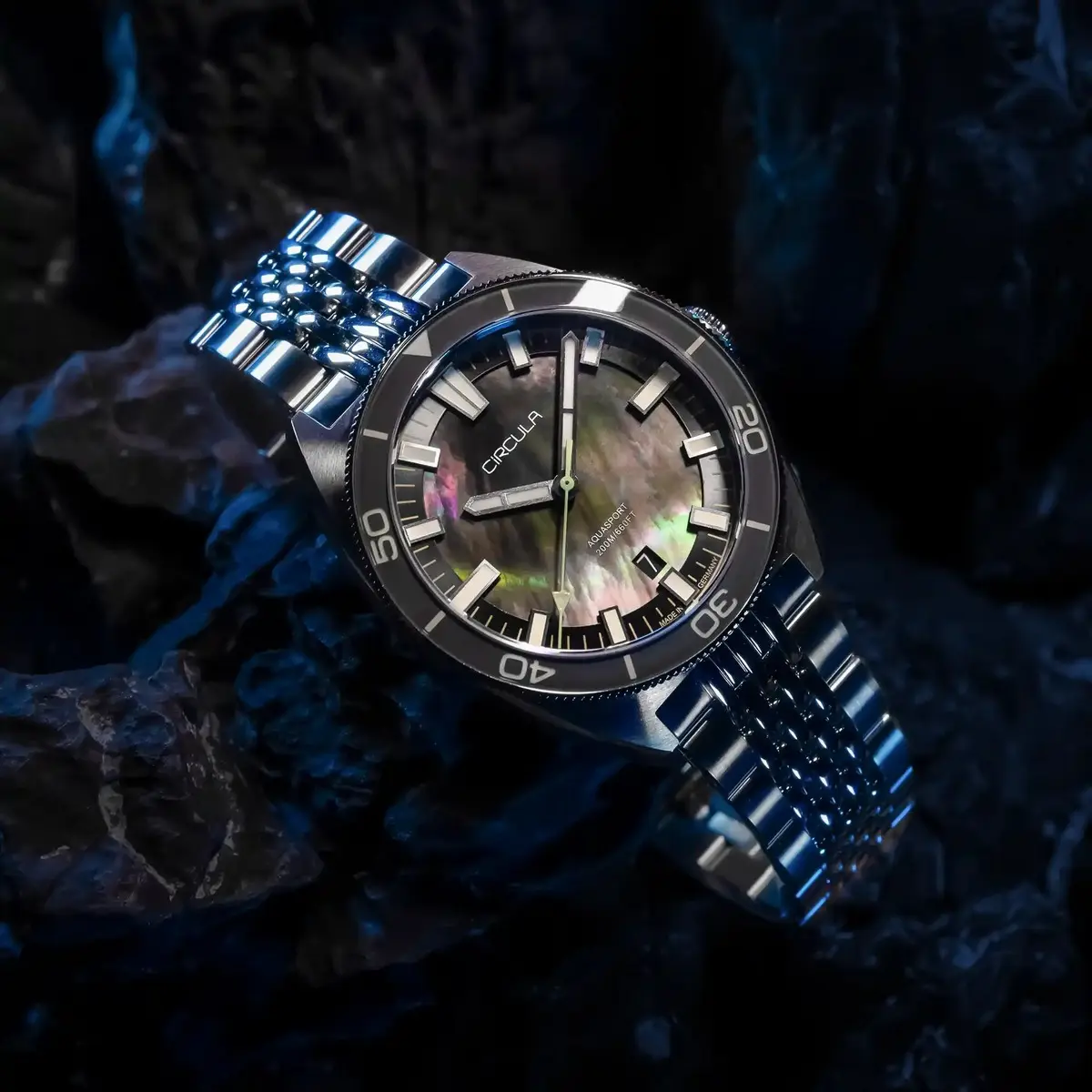 Im Inneren der AquaSport II Original LE arbeitet das Schweizer SW200-1 Automatikwerk in Elaboré-Ausführung – Garant für präzise Zuverlässigkeit. Bei einem Durchmesser von 40 mm vereint das Skin-Diver-Gehäuse aus Edelstahl schlanke Proportionen mit robuster Funktionalität und lässt die die Tradition historischer Taucheruhren von CiRCULA neu aufleben.