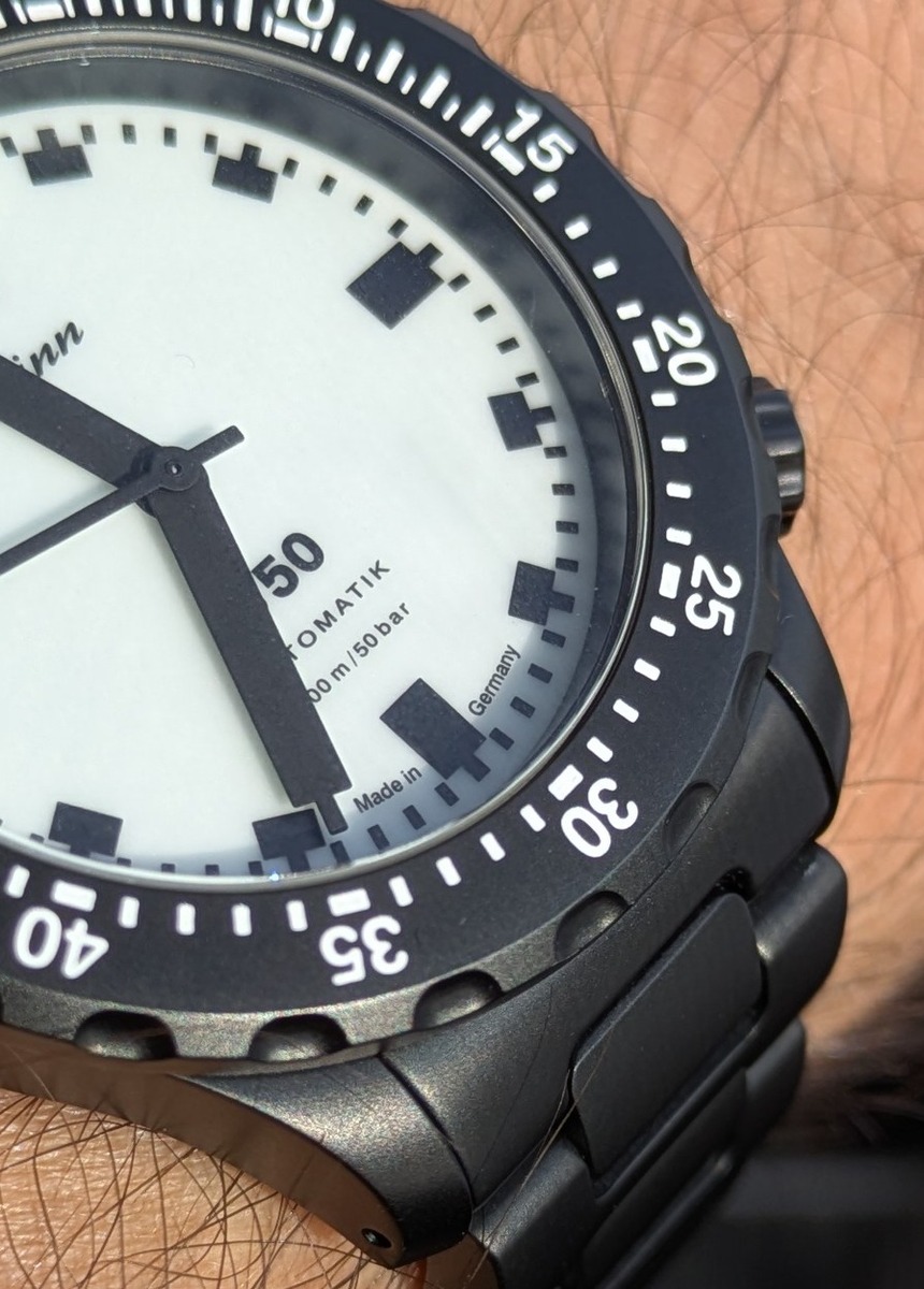 Das Ziffernblatt bzw. das Material ist ja schon was Neues. Ich hätte nie die Erwartung, dass es 100% derselbe Ton ist, wie denn auch, es ist anderes Material und es ist eine andere Oberfläche.