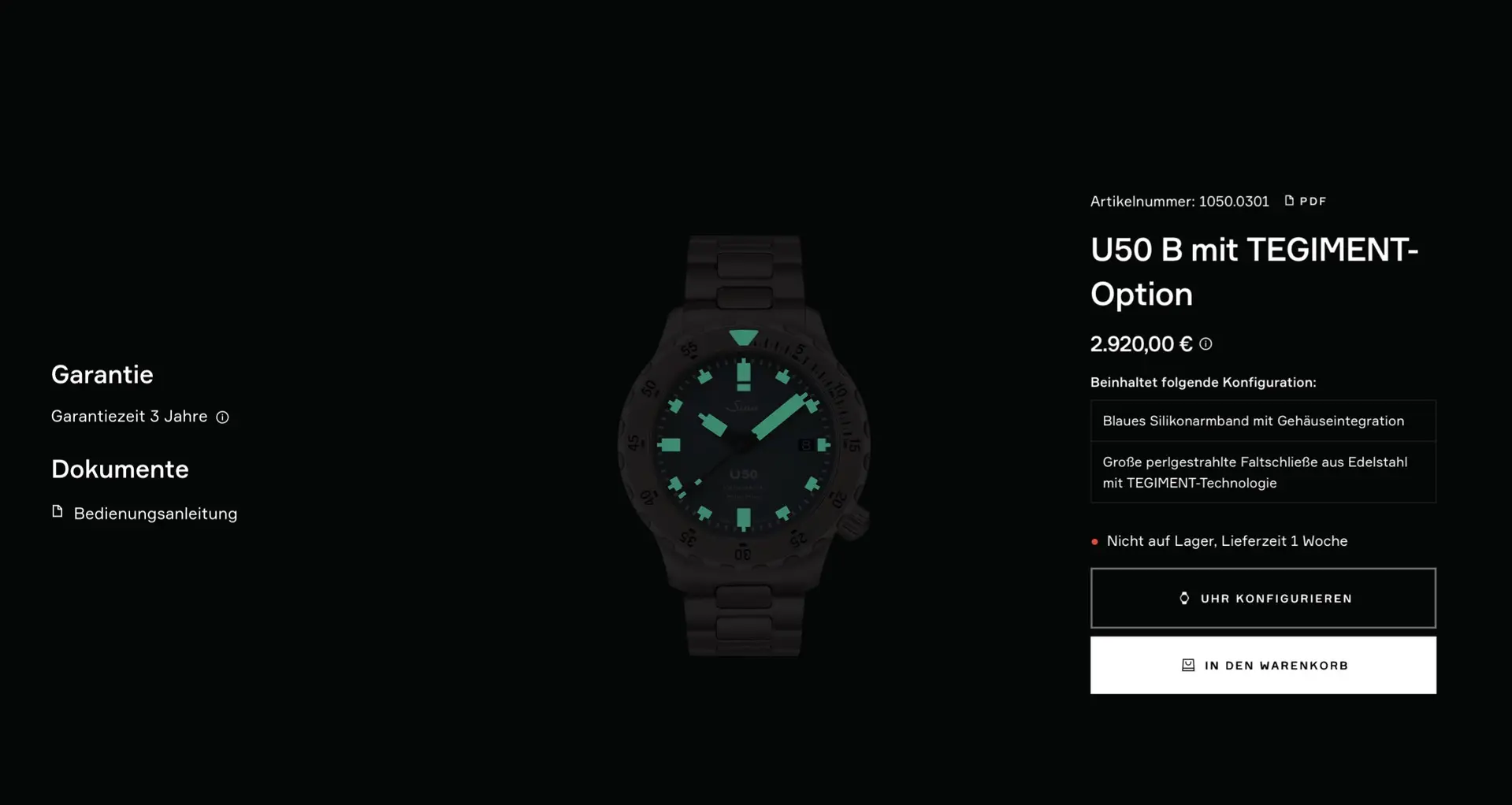 Mit der neuen mattblauen U50 b gibt es jetzt auch das Textilband in der Farbe Blau. Bisher nur in 20mm für die U50, ich bin gespannt, wann es in 22mm kommt.