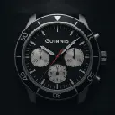 - Edelstahl-Lünette mit schwarz hartstoffbeschichteter Einlage mit 5-Minuten-Strichen und Zahlen mit nachleuchtender Leuchtfarbe ausgelegt, einseitig rastend drehbar.
