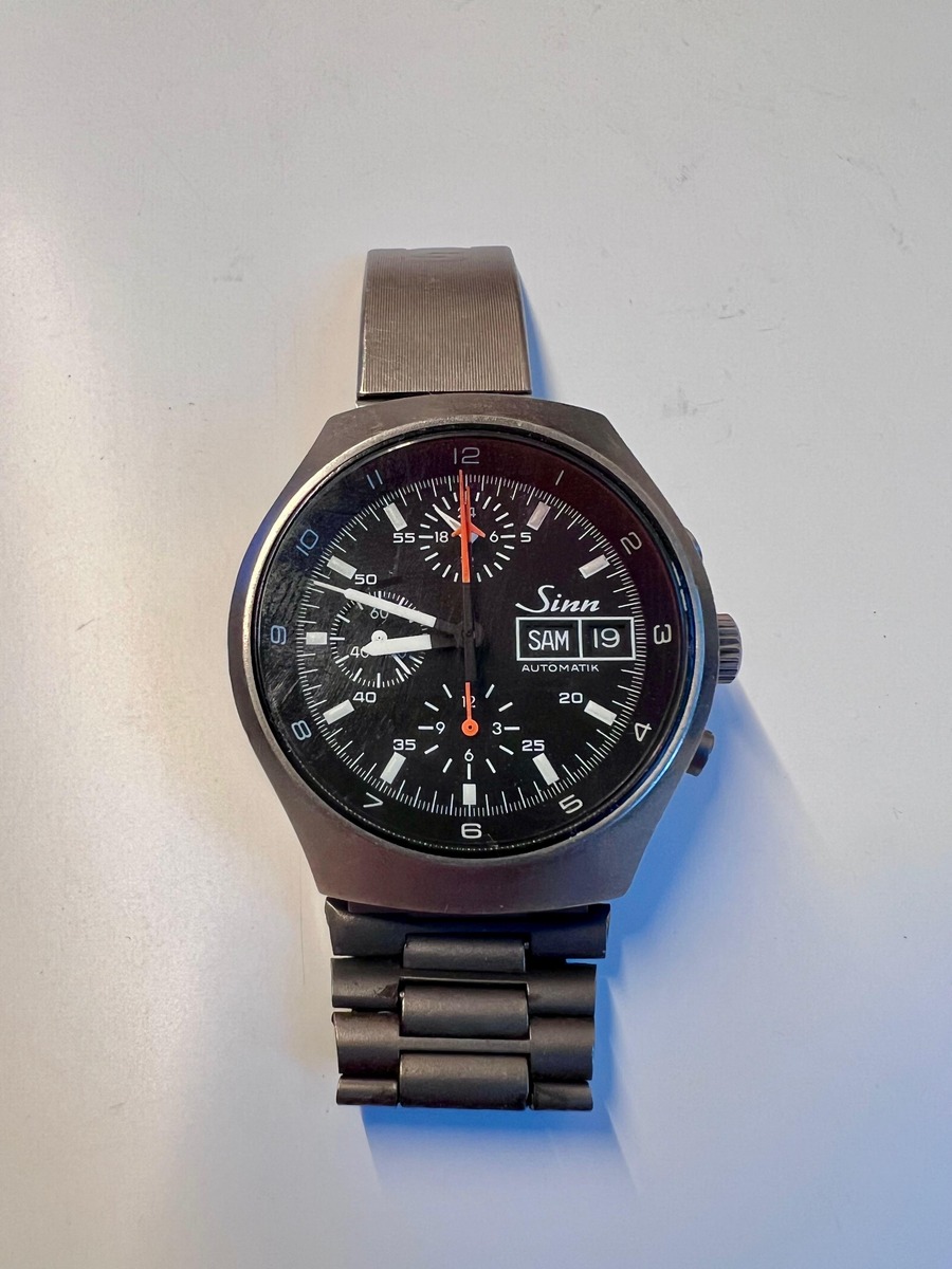 Diese Uhr wird Ende der 80er-Jahre erstanden worden sein (nicht ganz sicher), und lief seit dem einwandfrei. Mein Vater hat die immer in regelmäßigen Abständen reinigen und überholen lassen bei einem ansässigen Uhrenmacher. Soweit ich das sehe, ist es eine Titan-Uhr mit einem ebensolchen Titan-Armband. Es gibt leider keine Schachtel und keine Unterlagen. Mein Vater hat die Uhr damals ja nicht gekauft, um sie in 50 Jahren wieder zu verkaufen, sondern um sie zu tragen ...