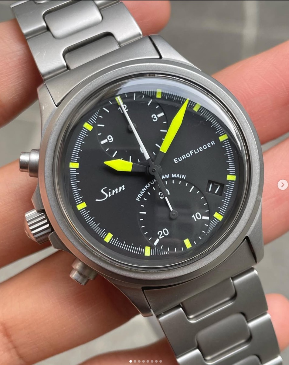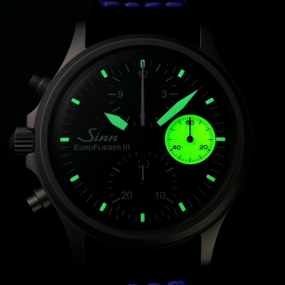 Basierend auf dem Fliegerchrono 356, 100M WD, ø38,5mm, Edelstahl, Datum & Wochentag und jede Menge Leuchtfarbe. Dazu schlagfestes Acrylglas.
