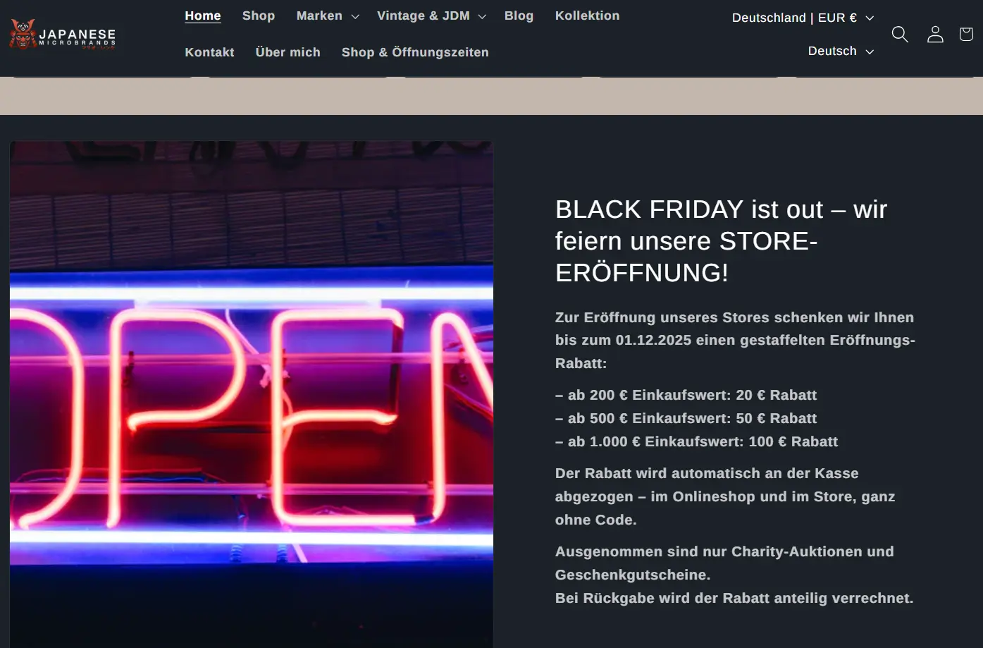 Willkommen bei JAPANESE MICROBRANDS & EXQUISITE UHREN AUS ALLER WELT – unserem Store & Showroom in der historischen Wacker-Fabrik in Mühltal in der Nähe von Darmstadt (Rhein-Main-Gebiet). Auf rund 230 m² Loft-Fläche präsentieren wir kuratierte Uhren in einem modernen, offenen Ambiente: viel Licht, klare Linien, ruhige Materialien – perfekt, um Modelle in Ruhe anzulegen, zu vergleichen und die Details zu entdecken.