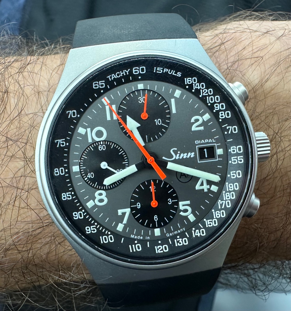 Ich weiß, Perlmutt hatten wir schon, aber so schön schwarzes ZB und Chromzeiger. U2, UX…. Würde mir gefallen.