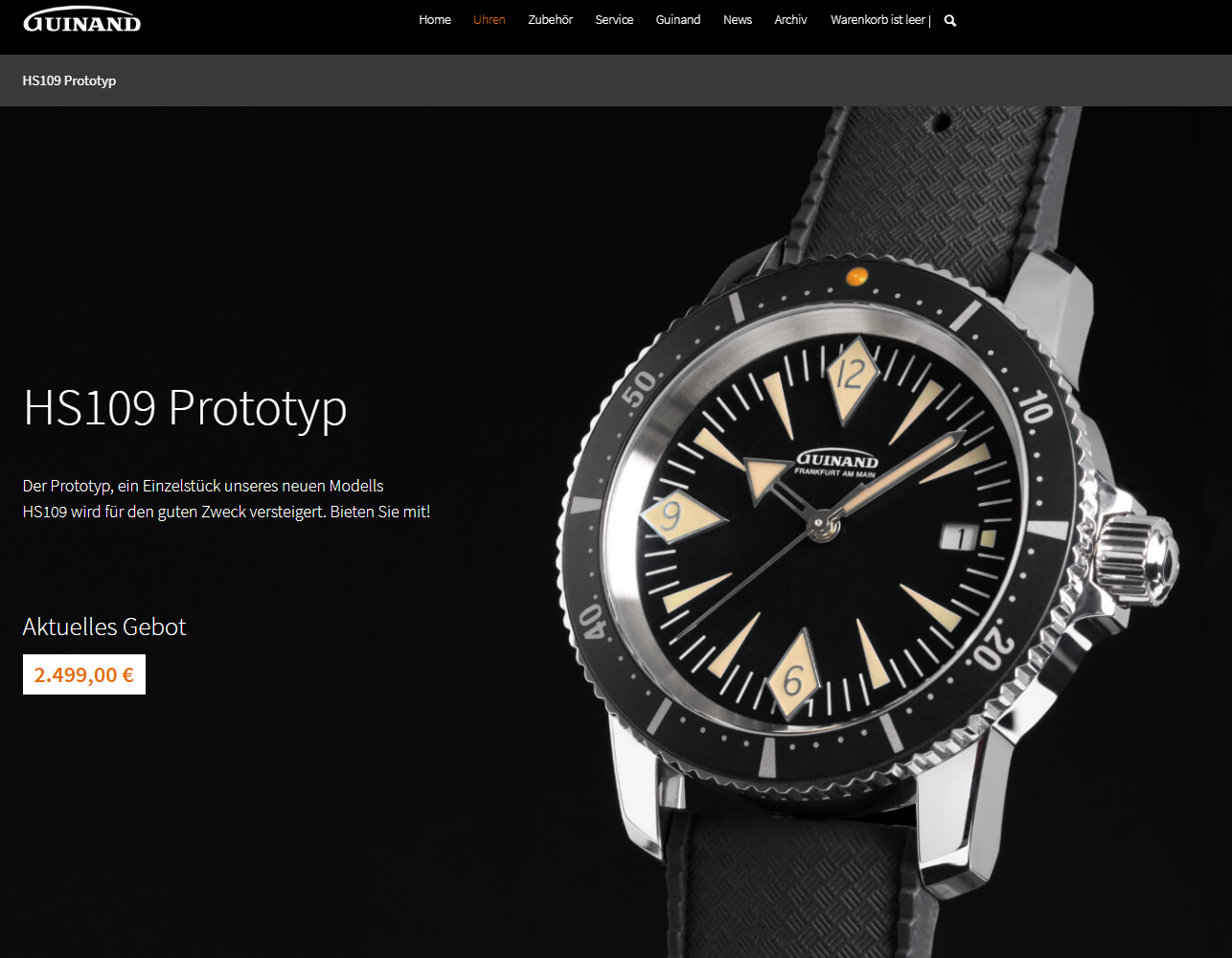 In Zusammenarbeit mit der Frankfurter Allgemeinen Zeitung versteigern wir ein einzigartiges Einzelstück der neuen Guinand HS109.