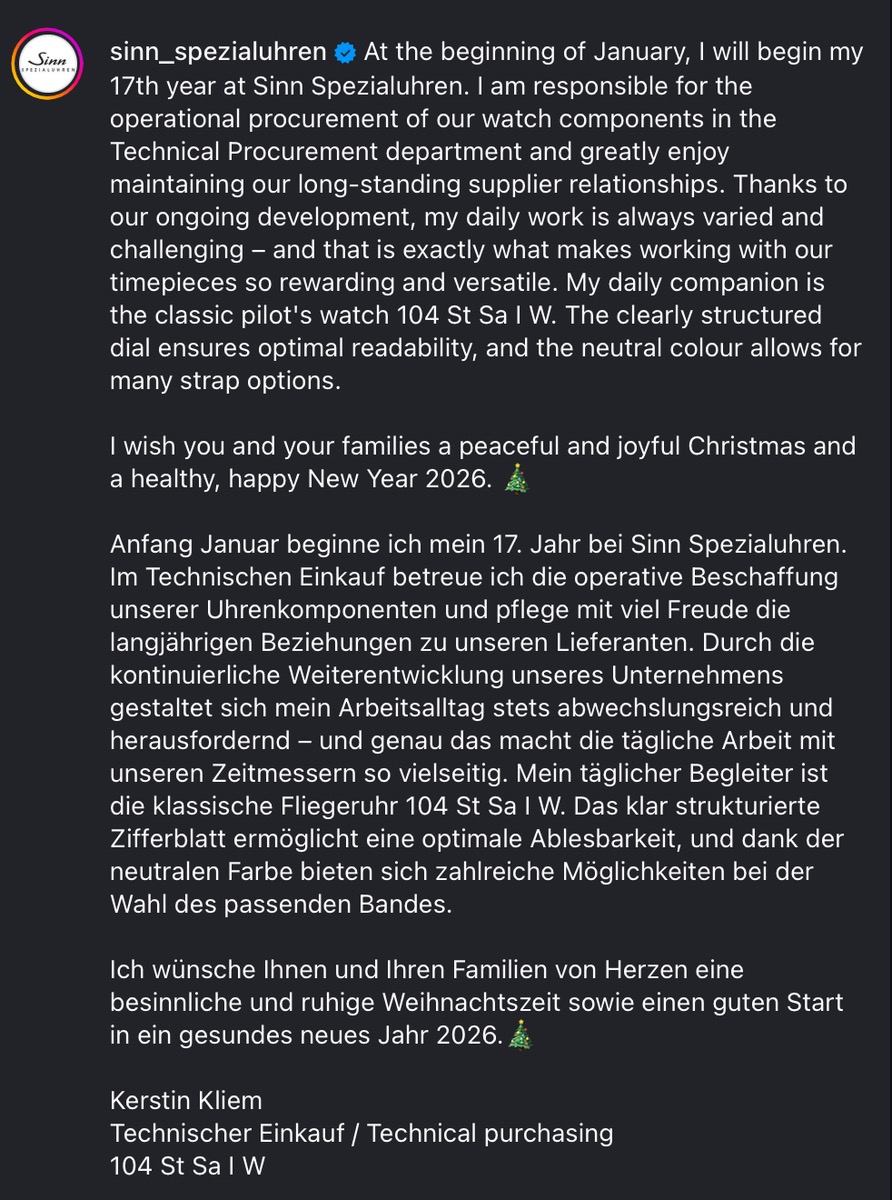 Als Quereinsteiger bin ich vor neun Jahren zu Sinn Spezialuhren gekommen – mit einer fundierten Ausbildung als Elektromechaniker im Gepäck und einer großen Begeisterung für präzise Technik. Seitdem arbeite ich in der HYDRO-Abteilung und habe dort nicht nur ein tiefes Verständnis für die speziellen Anforderungen dieser Technologie entwickelt, sondern auch eine besondere Leidenschaft dafür, sie verständlich und greifbar zu machen. Bei Betriebsführungen erläutere ich den Gästen die Funktionsweise und die Vorteile der HYDRO-Technologie – von der vollständigen Ölfüllung über die perfekte Ablesbarkeit unter Wasser bis hin zur beeindruckenden Druckfestigkeit. Nicht zuletzt deshalb ist meine persönliche Lieblingsuhr die UX: Sie vereint die HYDRO-Technologie in ihrer konsequentesten Form und steht für all das, was mich an meiner Arbeit begeistert.