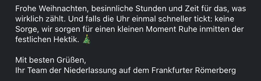 Ich wünsche allen eine besinnliche Weihnachtszeit und einen guten Start ins neue Jahr!