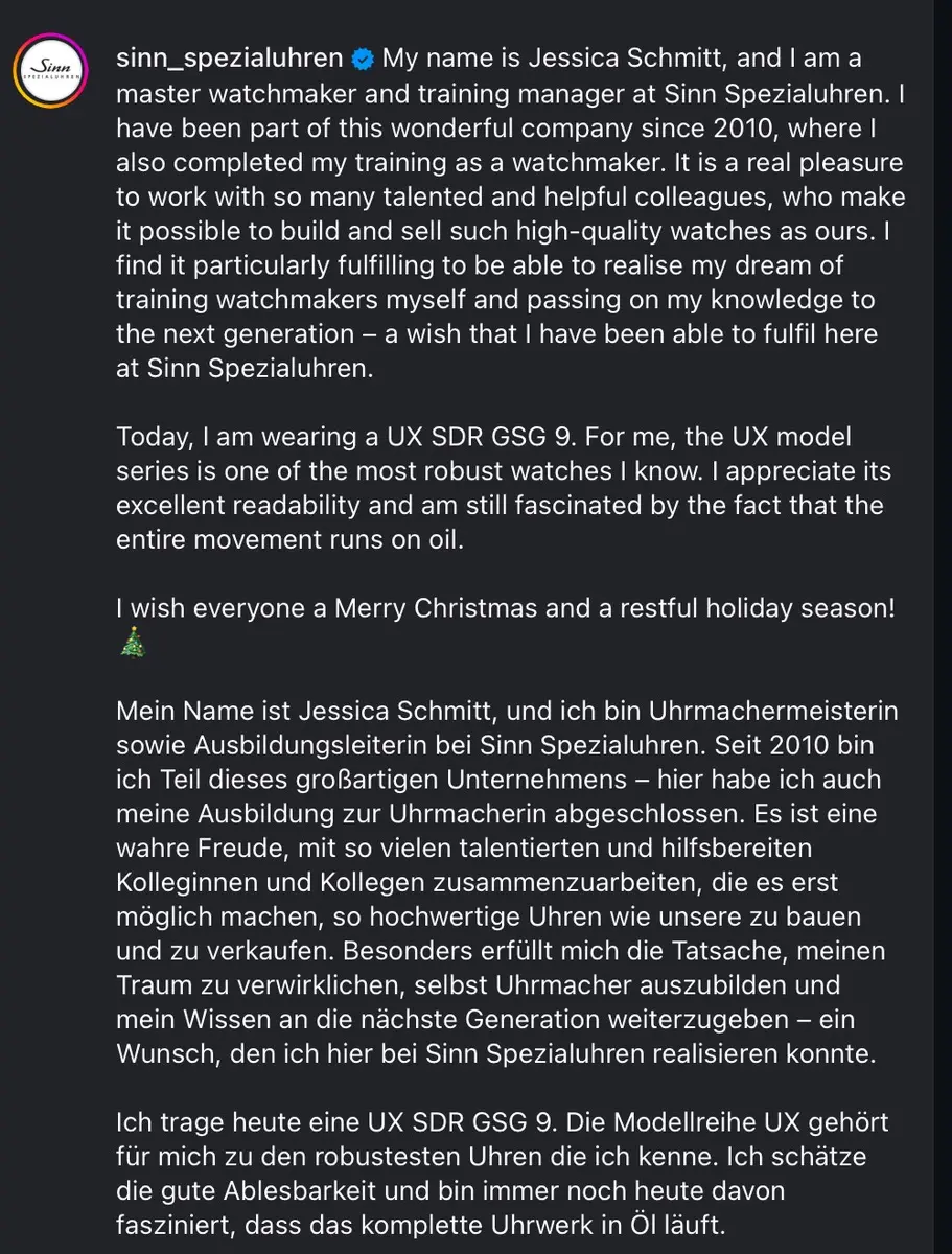 Die sympatische Sinn Ausbildungsleiterin und Uhrmachermeisterin trägt auch die UX, die robuste Quarzuhr für alle Lebenslagen!! 8)