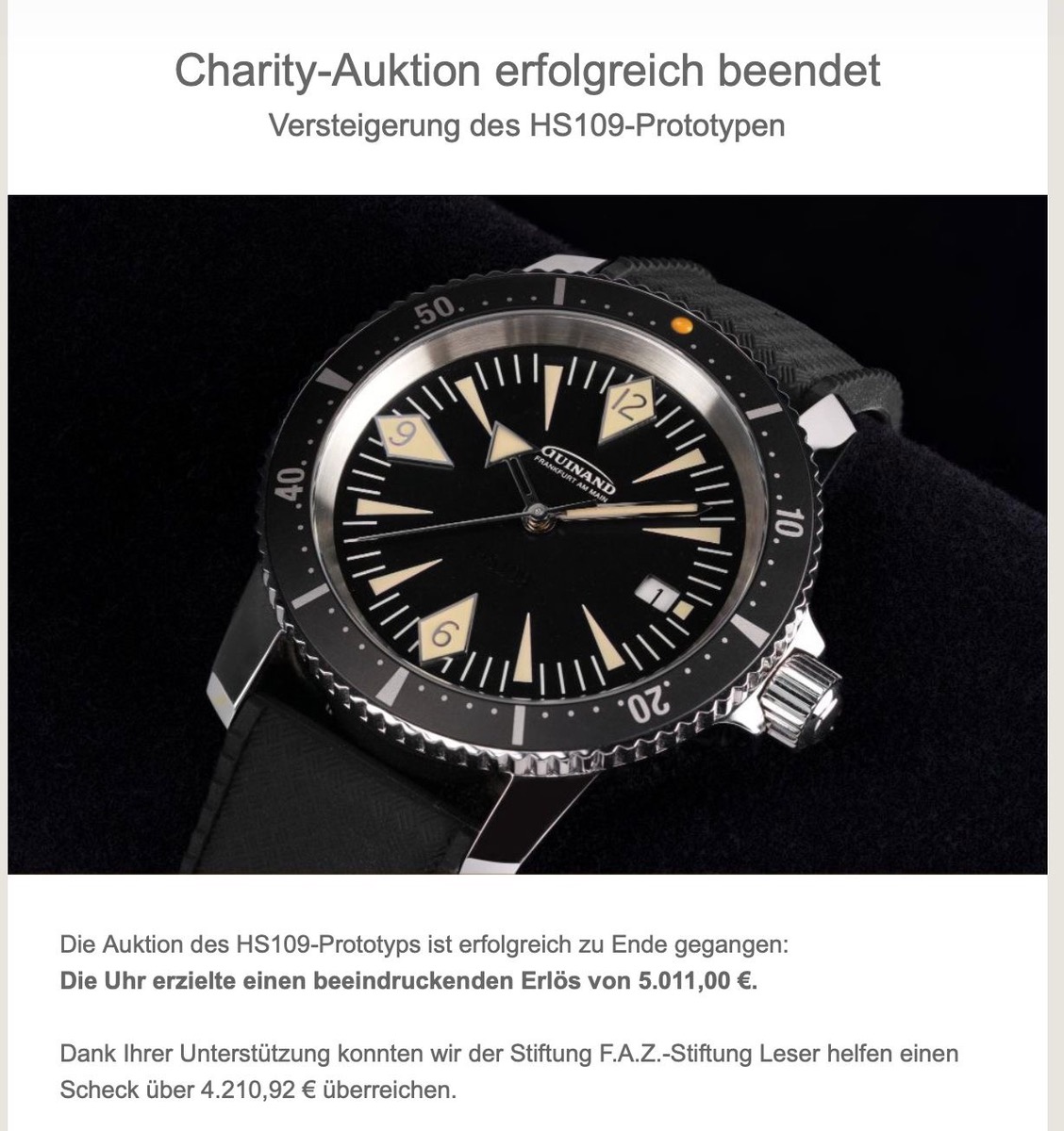 Zudem gibt es ein Update zum beliebten Handaufzugsmodell Instrument 91E und Informationen zur aktuellen Charity-Auktion zugunsten der FAZ-Stiftung "Leser helfen".