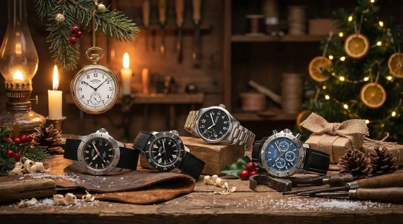 Matthias Klüh stellt nicht nur das umfassende Jubiläumsbuch "160 Jahre Guinand" vor, sondern präsentiert noch einmal alle Highlight-Uhren des Jahres im Detail. Darunter die extrem seltene Taschenuhr Guinand Frères 1865*,, die elegante *Deepwave Treasure Diver 1865*, der 70er-Jahre Chronograph *Montreal Chrono 1865 und natürlich die Hommage an den schnellen Helmut: Die *HS109*.