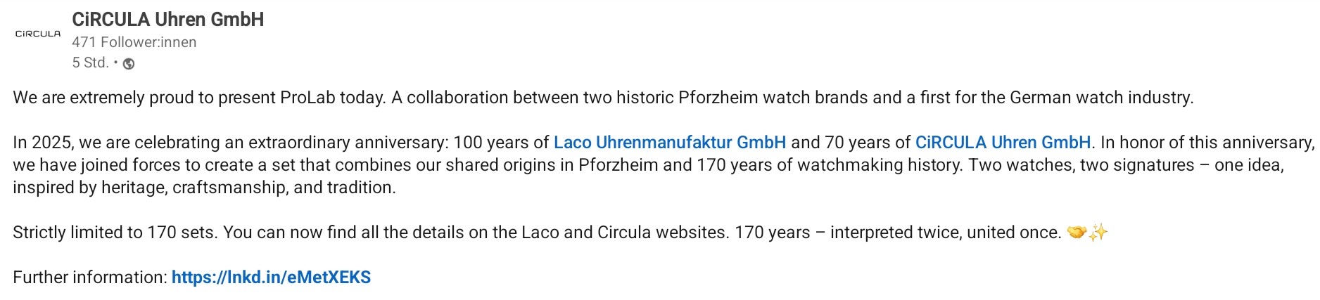 • Eine gemeinsame Heimatstadt, 170 Jahre Uhrengeschichte und eine Zusammenarbeit, geprägt von Herkunft, Handwerkskunst und Tradition. ProLab - gemeinsam entwickelt mit CiRCULA Uhren GmbH und auf 170… | Laco Uhrenmanufaktur GmbH
