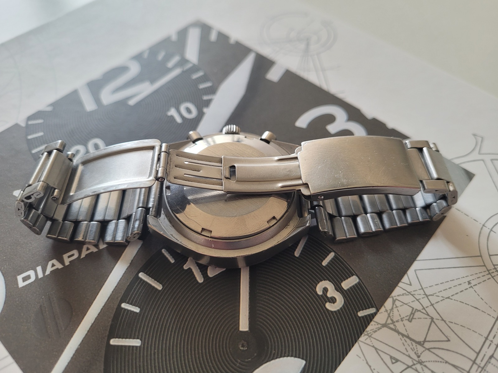 Die Uhr hat ein 3 teilges Gehäuse . 41mm Durchmesser, Mineralglas und hat ein Expandro Band verbaut .Mit denen hat Herr Sinn wohl damals die Uhren ausgeliefert .