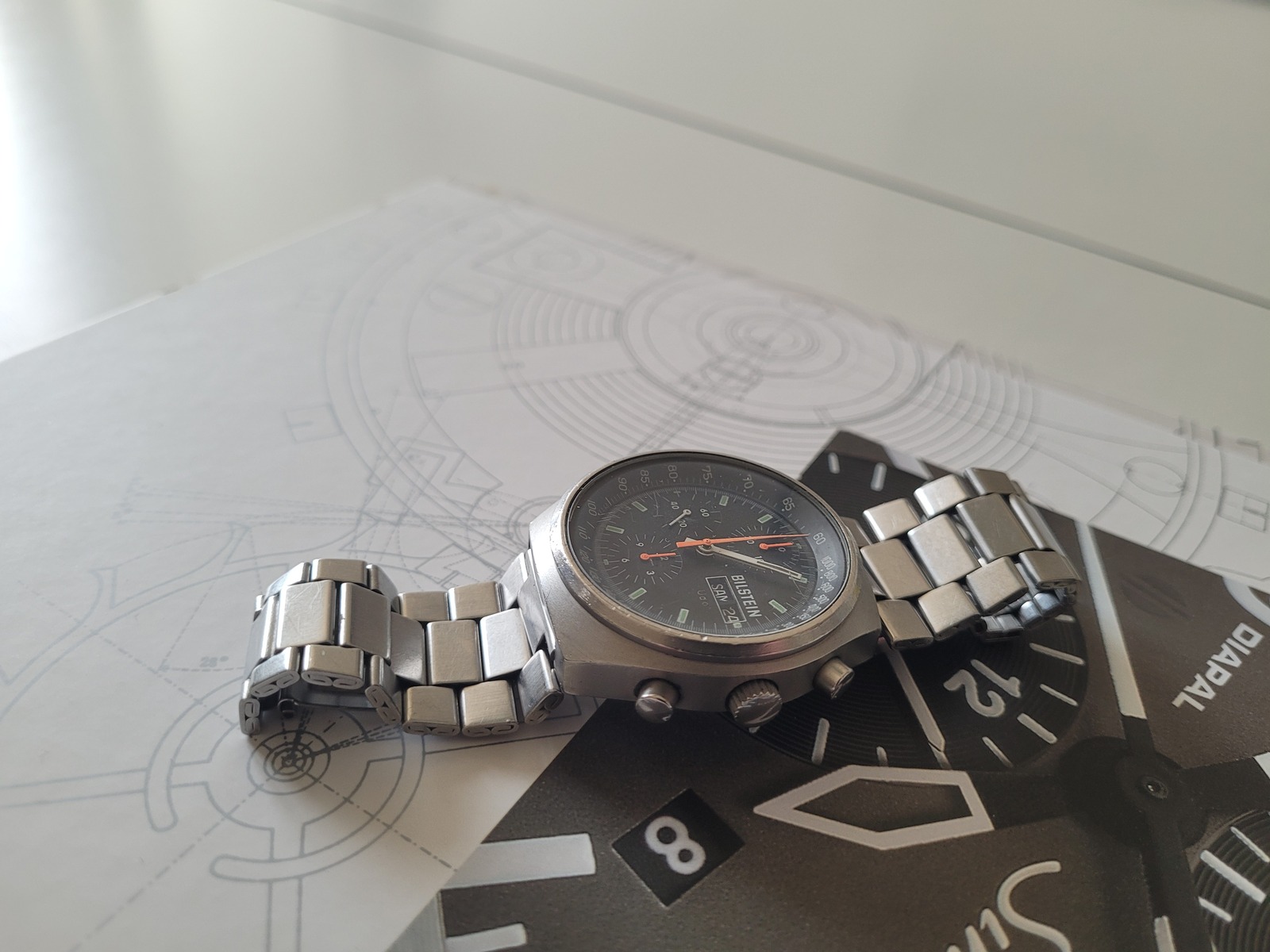 Aktuell habe ich eine Uhr aus der Familie bekommen . Ich halte sie für eine 144 aus den 70er Jahren . Sie trägt den Namen des Autoteileherstellers "Bilstein" auf dem Ziernblatt .Mein Uhrmacher erzählte mir ,dass Herr Sinn seine Uhren auch mit Fremdbezeichnungen verkauft habe .Er selbst habe sie zuvor bei erworben .Bislang wusste ich gar nicht, dass die Wege so verschlungen waren .