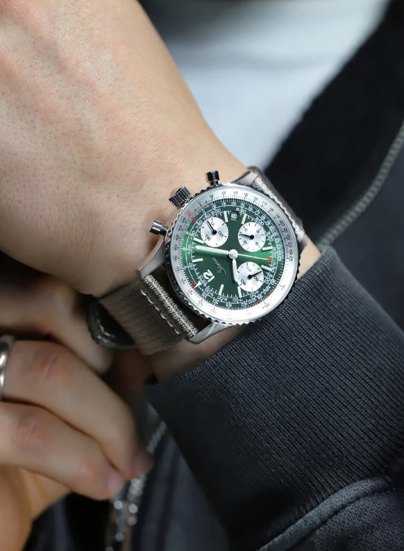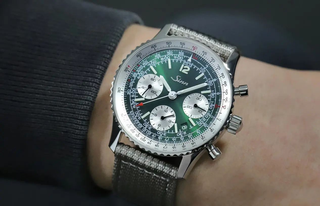 - Zifferblatt grün, galvanisch, mit Sonnenschliff veredelt