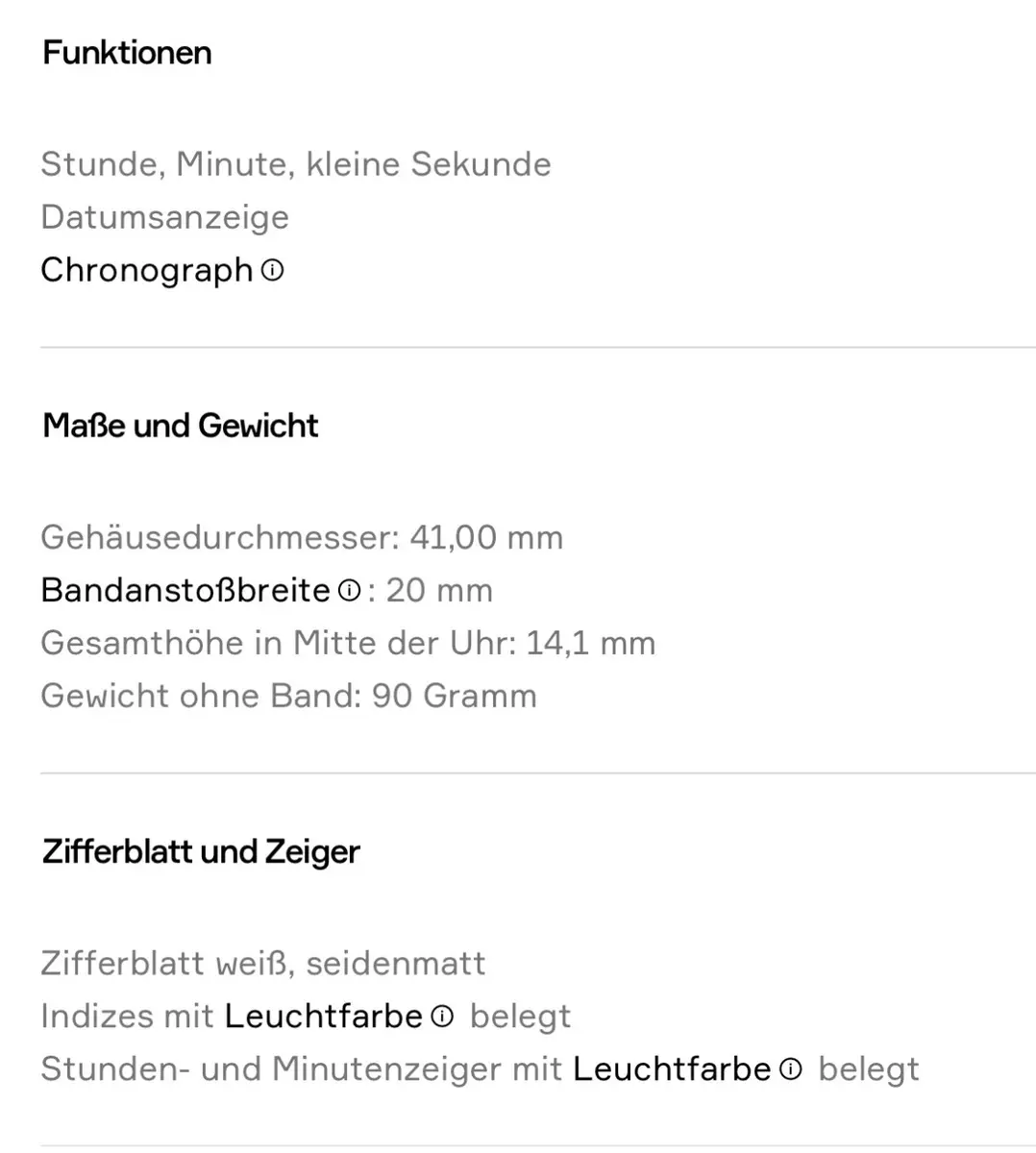 • Zifferblatt weiß, seidenmatt