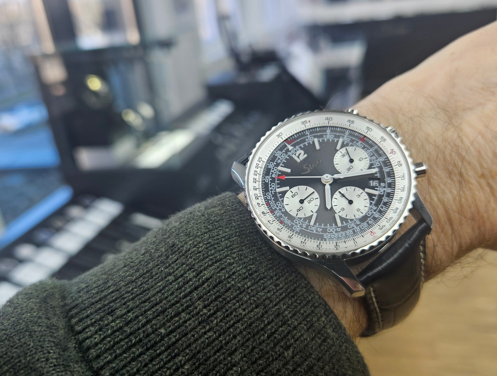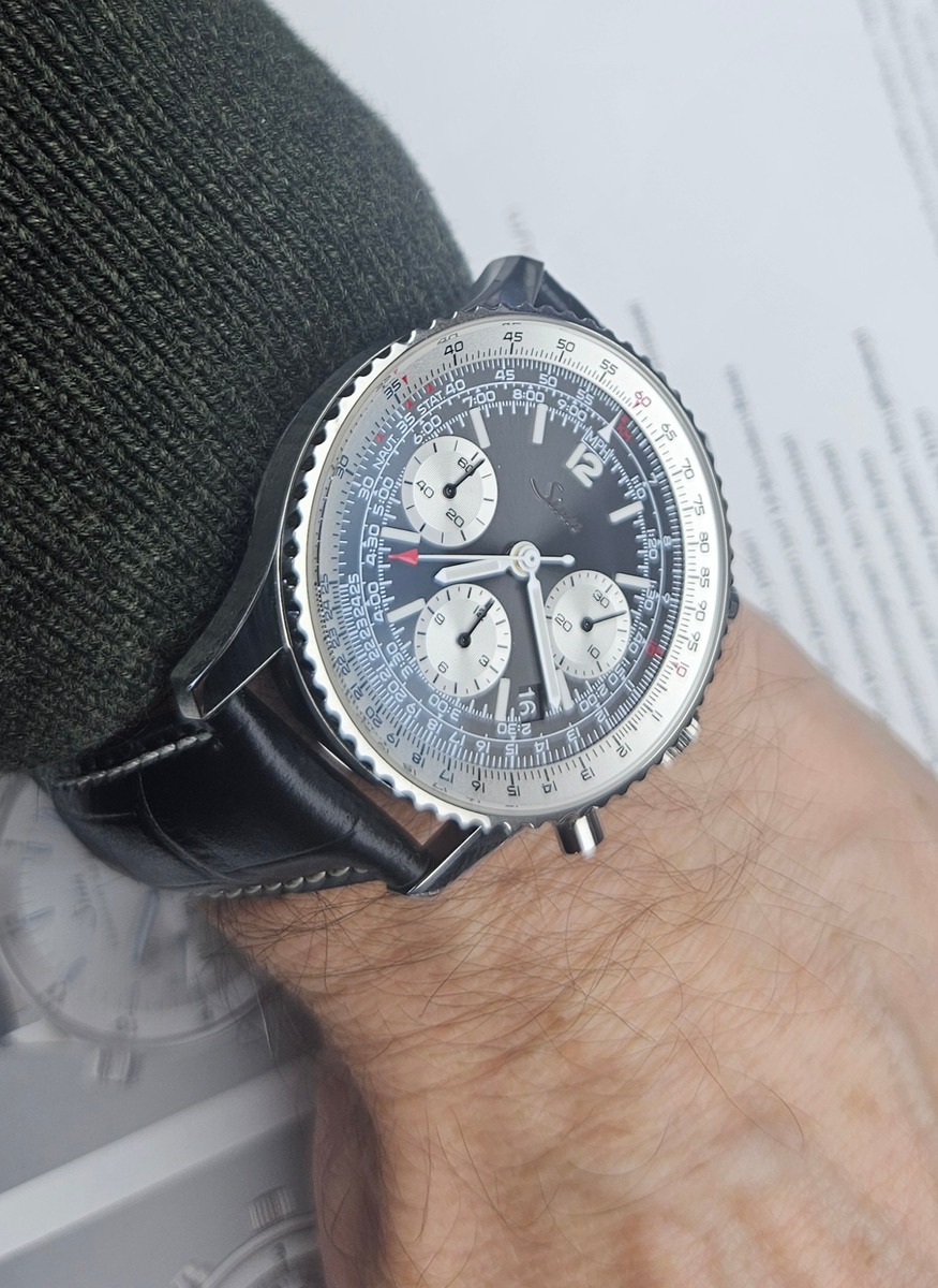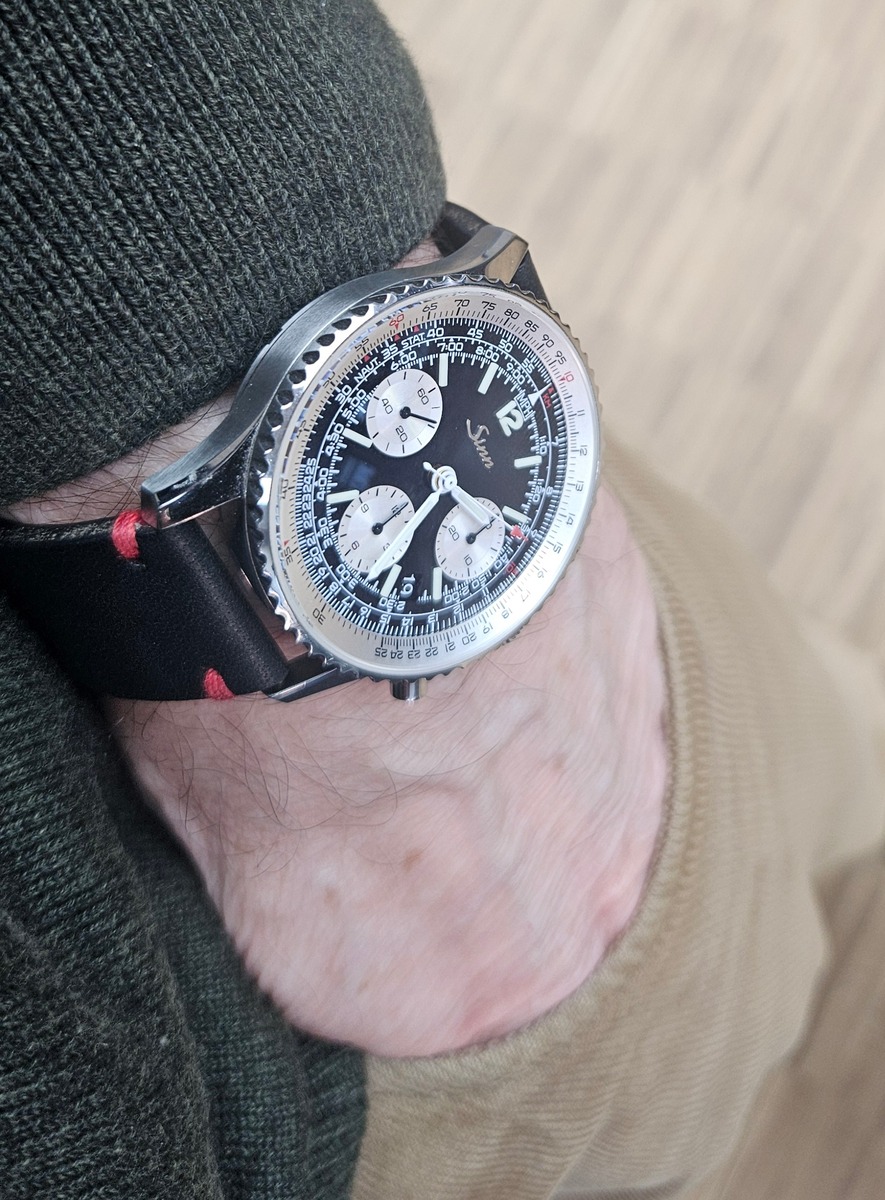 Bei den Pressebildern, die dankenswerter Weise unser Leonhard in Beitrag 4 eingestellt hat, muss ich das rot-weiß-grüne Stoffbändchen neben der fantastisch schönen Sinn reklamieren. Gerade weil die Sinn so schön ist, nervt das Bändchen irgendwie. Nennt mich "pingelig" oder sonstwas, aber ich verstehe garnicht, warum man das da einbaut. Für mich lenkt das unnötig ab und triggert den inneren Monk (umgangssprachlich eine Person mit einem extremen Drang zu Ordnung, Symmetrie und Struktur, oft verbunden mit zwanghaften Tics). An dem Band könnte ein metallisches Teil z.B. ein Verschluss sein, der das Gehäuse der wunderschönen 903 zerkratzt.