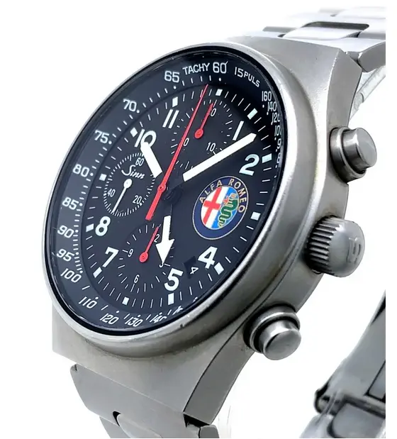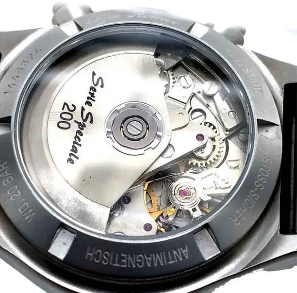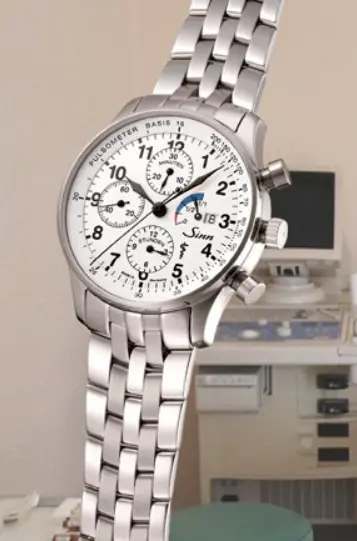 Kooperationserkennung: Tachymeterring, 2 grüne Totalisatoren (auf 12 und 6 Uhr), grüner Sekundenzeiger