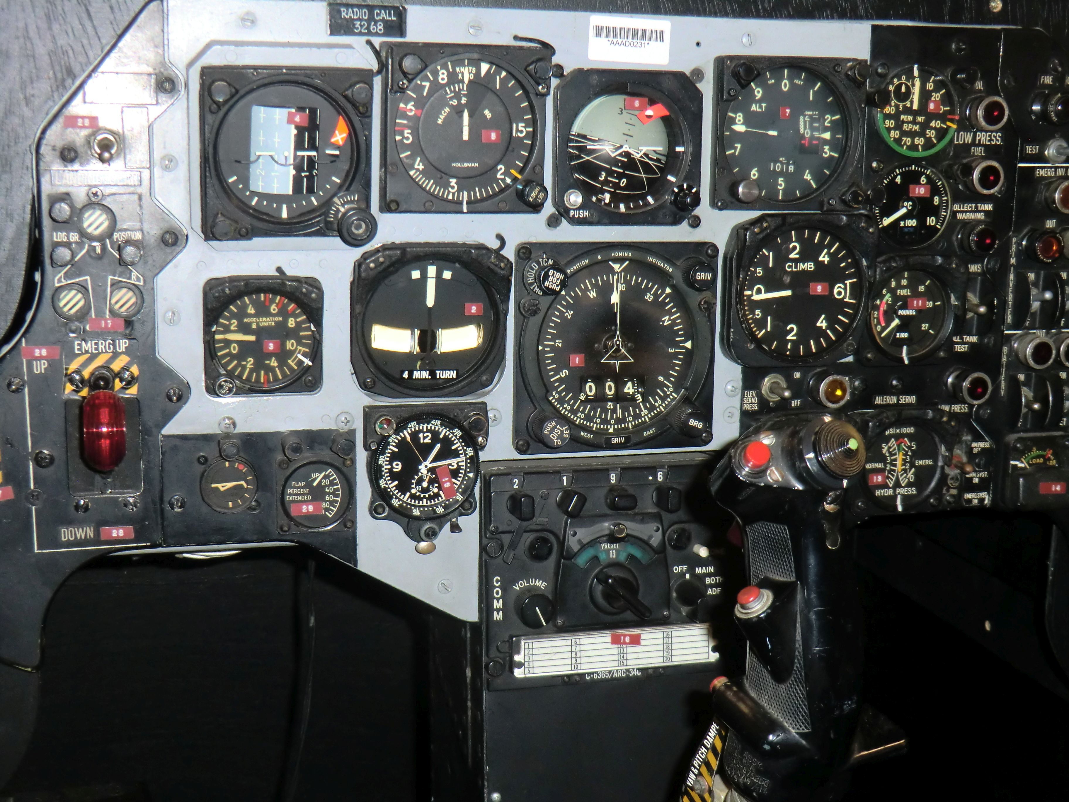 1982 wurde dieses Flugzeug ausgemustert und durch die deutsch-französische Entwicklung, den "Alpha Jet" abgelöst.Unten ist das Instrumentenpanel der "Fiat" G.91 zu sehen.
