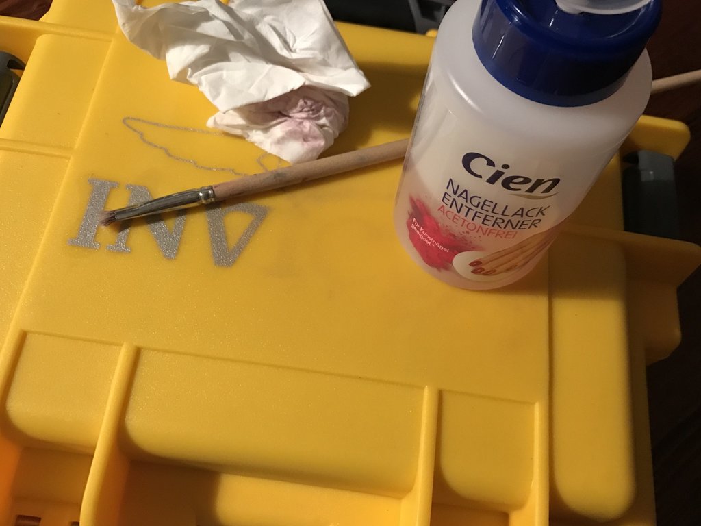 Die Weltneuheit ist nun nicht, dass ich mit einem kurzen Borstenpinsel, Nagellackentferner und viel Geduld, das Logo und den INVICTA-Schriftzug rückstandslos und oberflächenbeschädigungsfrei entfernen konnte.
