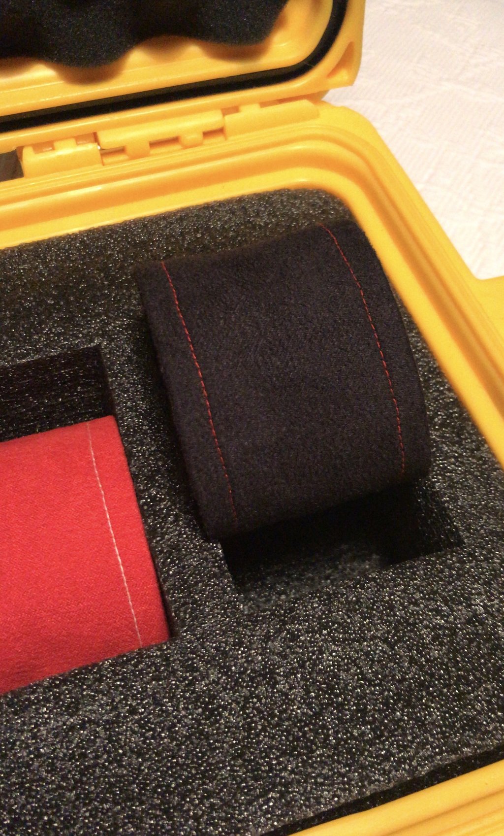 Überzieher aus Alcantara in den Standart-Farben schwarz, champagner, rot und grau, auf Wunsch individuell mit farbig abgesetzten Nähten, pimpen Sie Euren Koffer aber sowas von auf.
