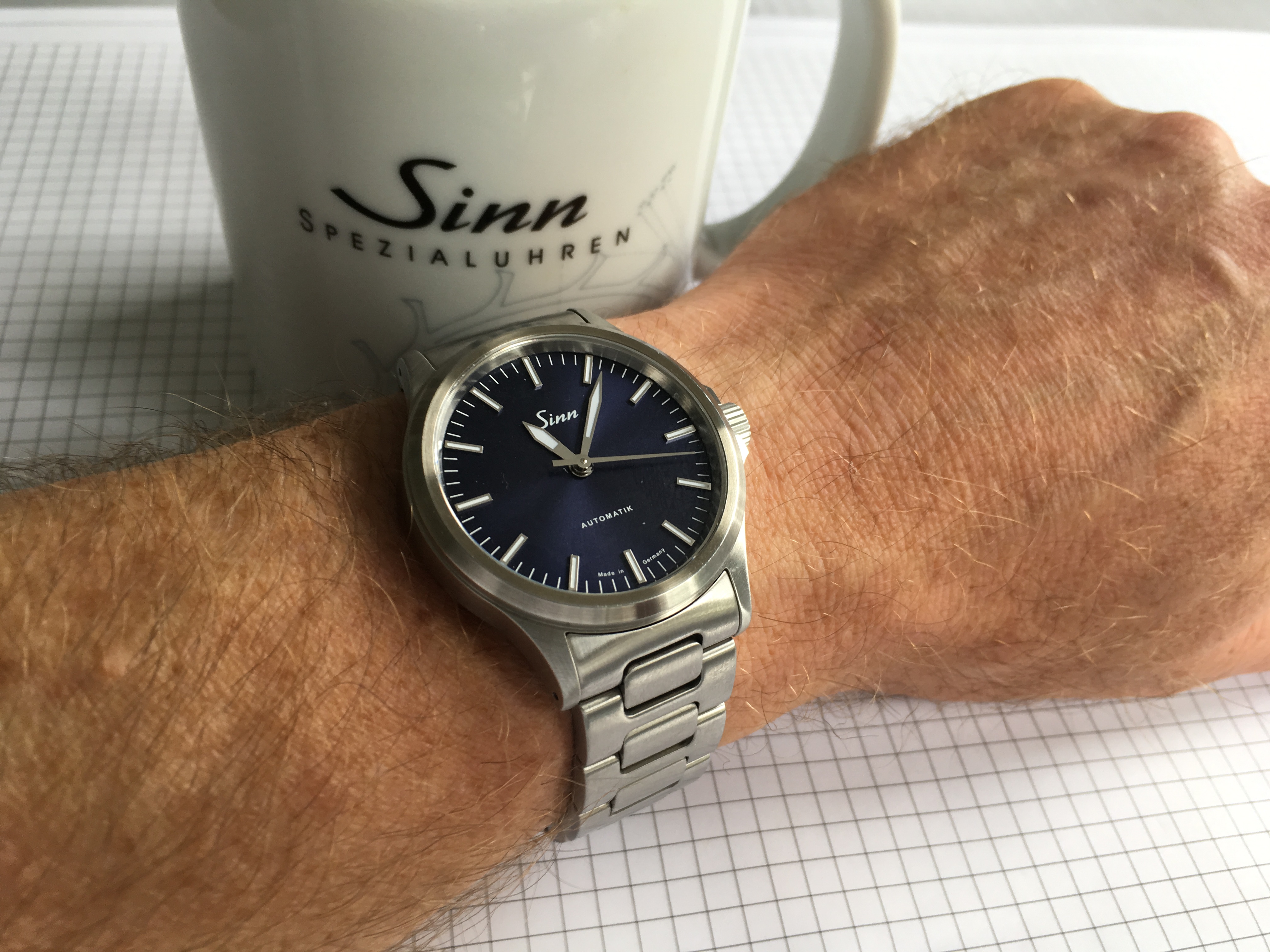 Prinzipiell eine schöne Uhr, aber ich muss bei aller Begeisterung für Sinn zugeben, dass mir der sehr ähnliche Starfighter Chronograph aus Rödelheim mehr zusagt: deutlich günstiger, 20bar wasserdicht, Saphirglas und unlimitiert.