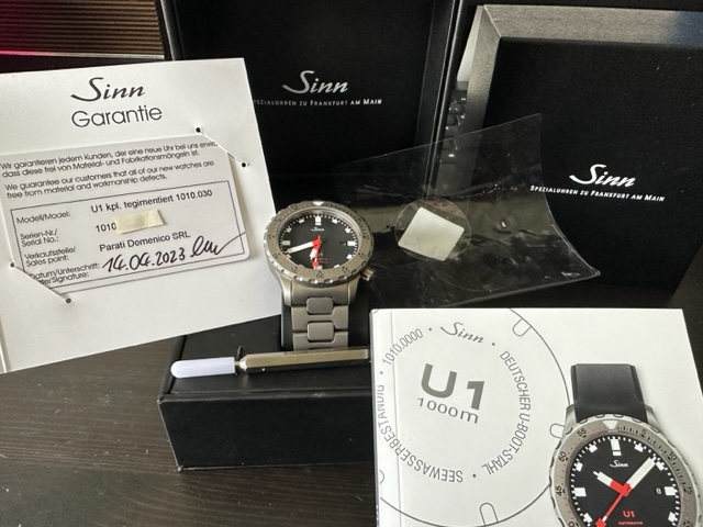 Habe diese U1 in der Tegimentversion, im April neu mit rotem Silikonband (gekürzt auf gute 19 cm) gekauft und da mir das rote Band doch etwas zu dominant war habe ich noch das Schwarze (ungekürzt und ungetragen) dazugekauft. Das tegimentierte Stahlband habe ich auch noch dazu gekauft (NP 390 Euro) ,welches ich gestern nur zur Probe montiert habe und gleichfalls ungetragen ist.