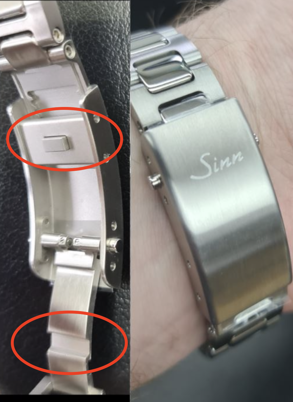 Wenn man mal das Bild von MikeJJ als direkten Vergleich dazu nehmen darf als Vergleich...insbesondere Bild 5 - sieht schon sehr schlank und cool aus die neue Schließe...das hat Sinn soweit gut gelöst finde ich. Aber klar muss man mal live sehen. Ich freue mich jedenfalls darüber... Viele Jahre drauf gewartet. Wahnsinn - so langsam kommen die Sachen alle. Auch die verstellbare Schließe beim SilikonBand habe auch lange herbeigesehnt. Toll Sinn.
