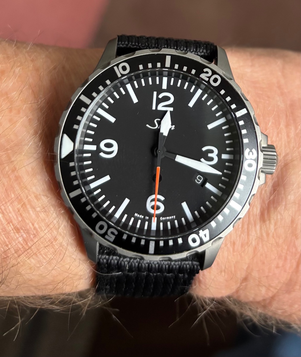 Die 857 trägt sich angenehm am Stahlband bei 33 Grad und leichtem Wind am langen Meia Praia Strand an der Algarve.