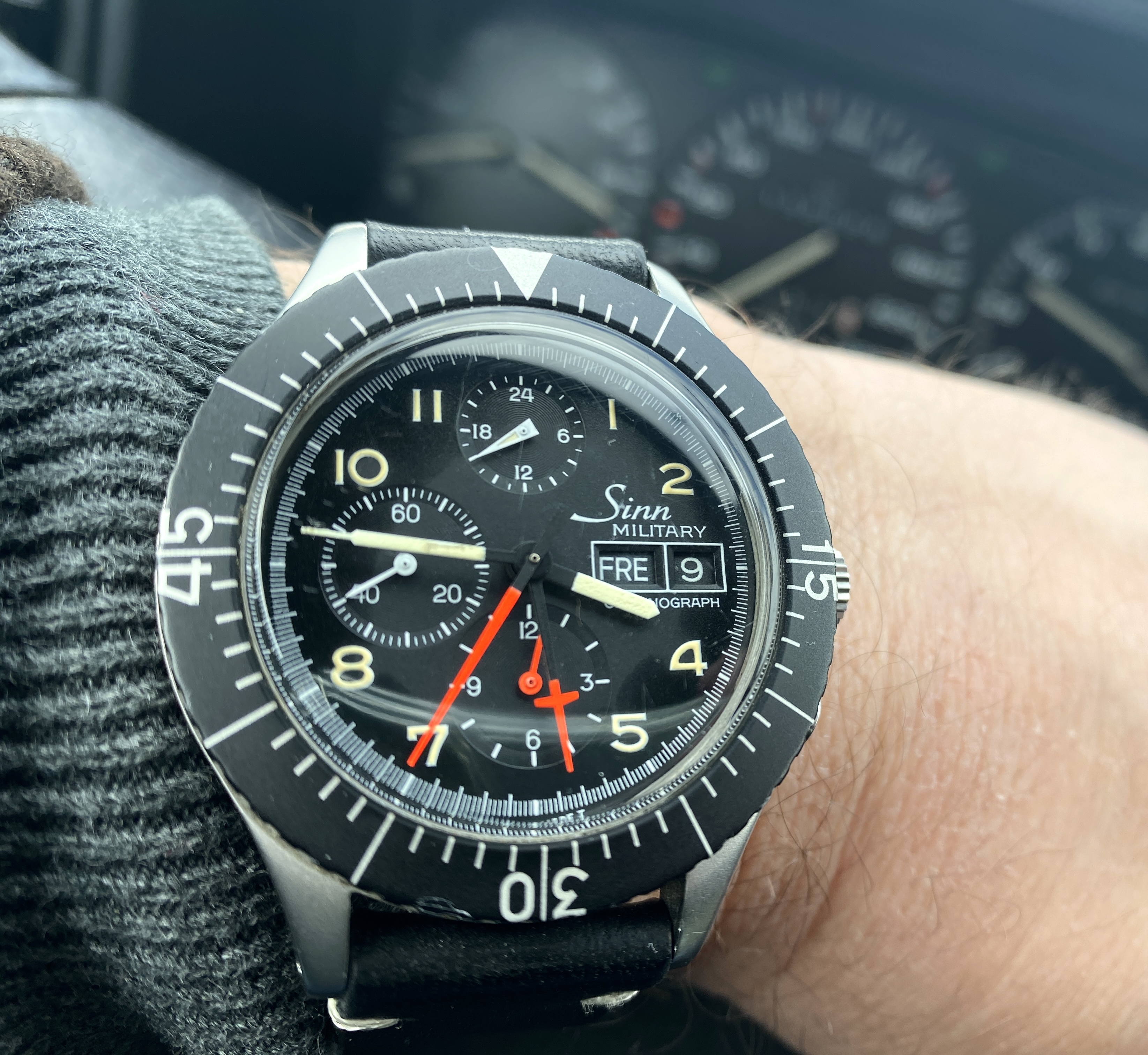 Meine Sinn 856 S UTC von 2007 mit Linksumbau bekommt leider zu wenig Zeit am Arm – vor allem, weil sie mir inzwischen im Vergleich zu den Chronographen zu klein am Arm erscheint