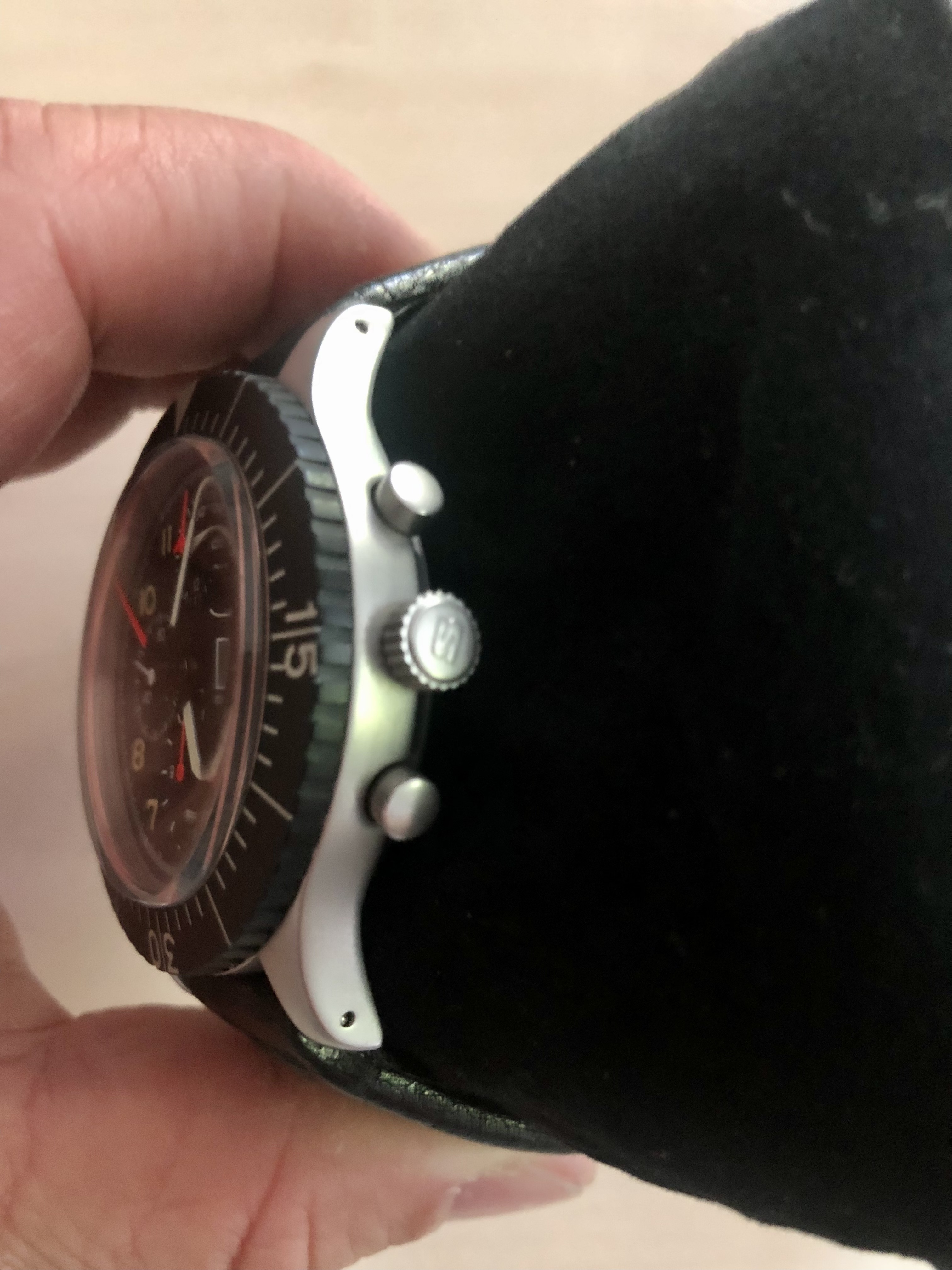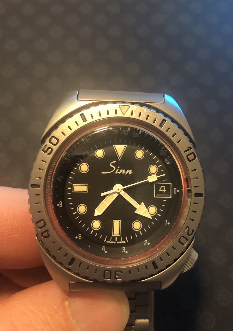Zu den Zeigern: die scheinen mir auch vor längerer Zeit mal gewechselt worden zu sein. Sind sind etwas heller und leuchten auch im Dunkeln entsprechend stärker.