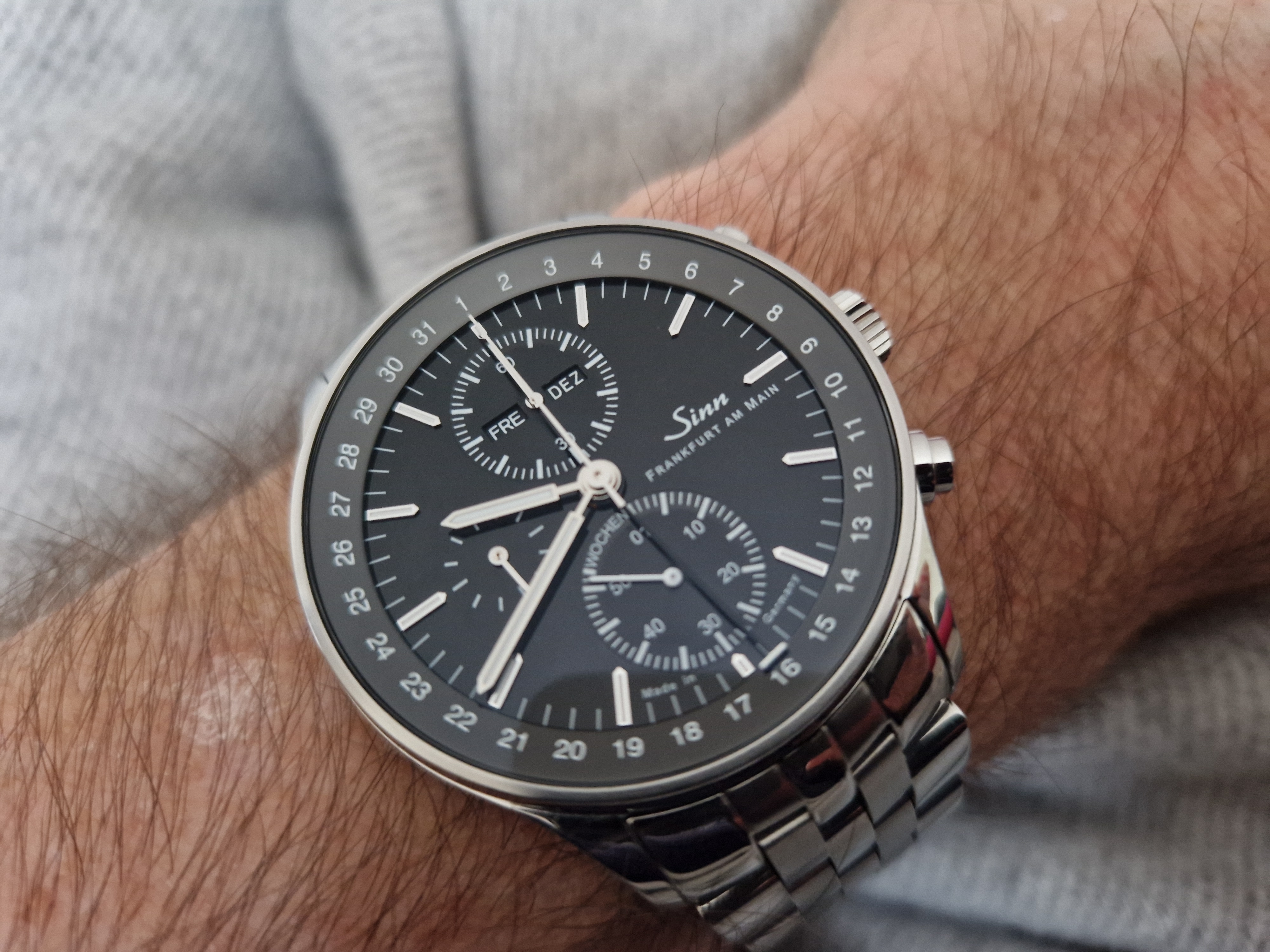 Dementsprechend habe ich meine neue Uhr zu Beginn in einen Uhrenbeweger gesetzt und alle 24 Stunden die Zeit mit der Funkzeit verglichen. Das ist dann meine Referenzungenauigkeit. Wenn ich dann feststelle, dass es zu Abweichungen von dieser Norm kommt. wäre für mich der Zeitpunkt der Revision gekommen.