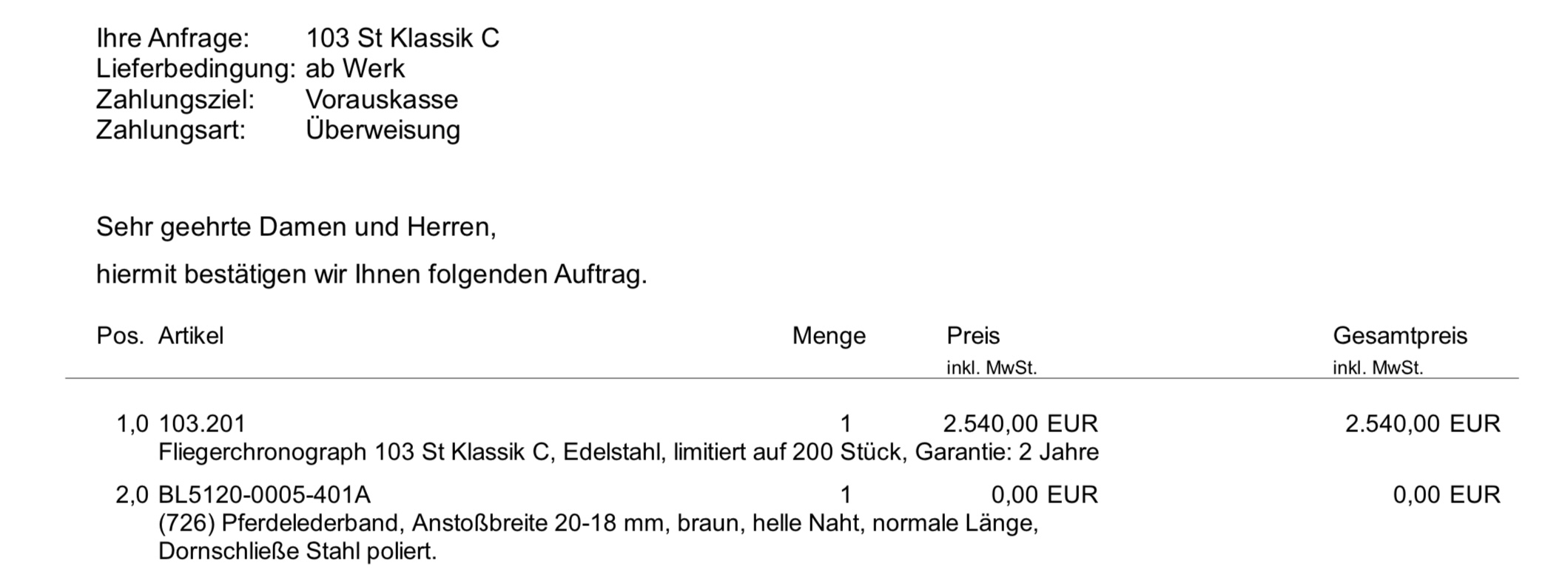In der Mail mit der Auftragsbestätigung steht folgendes.