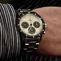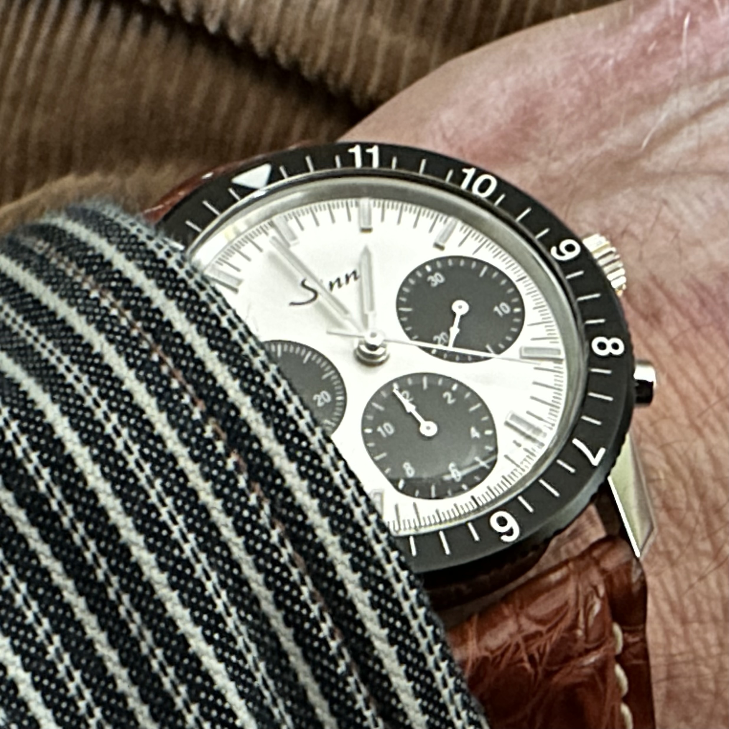 Hatte ich meine 103 ST Klassik C ein wenig verändert. Die silbernen Zeiger der Hilfszifferblätter gegen weiße getauscht. Die Zentralen Zeiger gegen schwarze und die Lünette einer Meisterbund. Tatsächlich würde es mir gut gefallen, wären die Indizes schwarz umrandet, allerdings nicht so fett wie bei der HK.