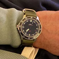 Nun zur Geschichte der Uhr. Wie Dirk bereits schrieb war der Erstbesitzer Fluglotse bei der Bundeswehr und hatte die Uhr auf einer Luftfahrtmesse von Helmut Sinn persönlich Mitte der 80er gekauft. Sie hatte nach seinen Angaben ursprünglich einen Minutenlünette, die sich für seine Arbeit im Rahmen der militärischen Großluftraumüberwachung (unterschiedliche Zeitzonen) als unpraktisch erwiesen hätte. Folglich ließ er sich die Uhr direkt mit einer beidseitig drehbaren Stundenlünette ausstatten. Ich will jetzt nicht sagen "zusammenschustern"...